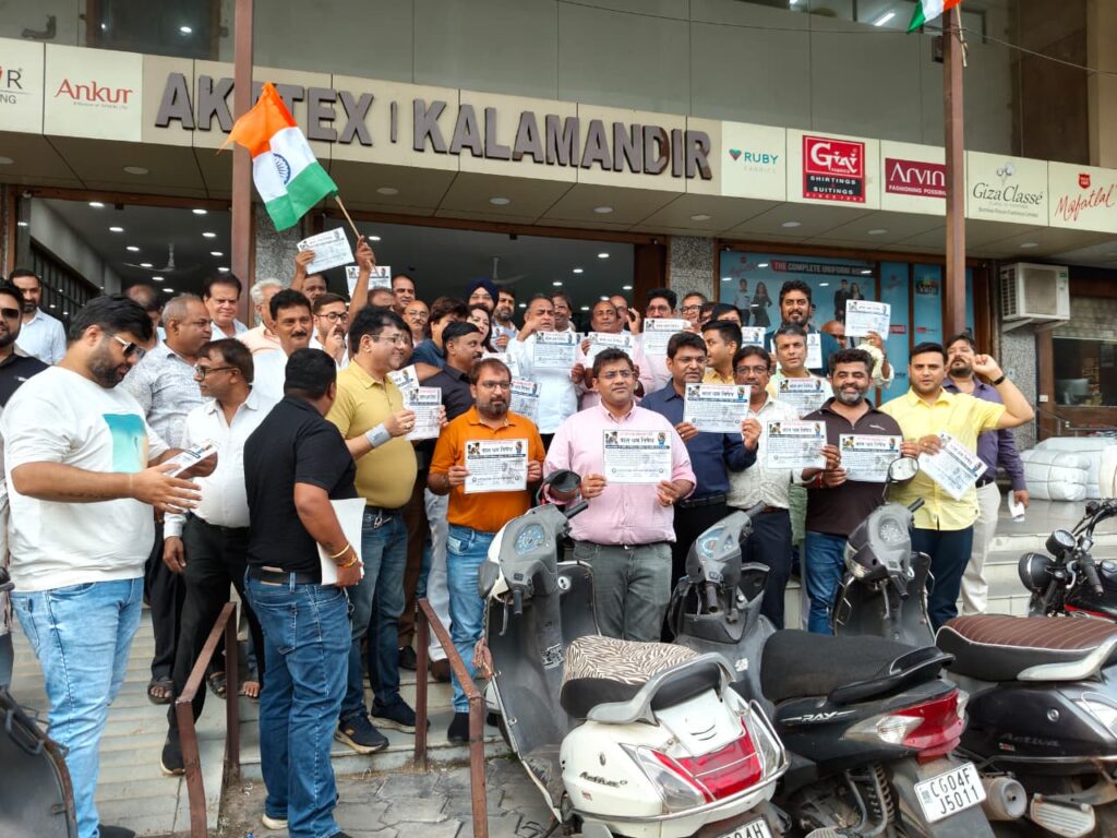 चेंबर प्रदेश अध्यक्ष के नेतृत्व में चेंबर का प्रतिनिधि मंडल दी रायपुर थोक कपड़ा व्यापारी संघ लि.पंडरी, रायपुर द्वारा आयोजित तिरंगा यात्रा में शामिल हुआ एवं बाल श्रम निषेध जागरूकता अभियान के तहत पोस्टर एवं स्टीकर लगाए