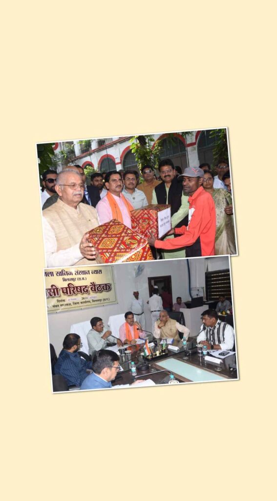 बिलासपुर:- कलेक्टर अवनीश शरण की अध्यक्षता में डीएमएफ शासी निकाय की चौदहवीं बैठक जिला कार्यालय के मंथन सभाकक्ष में आयोजित की गई। जिसमें डीएमएफ के संबंध में भारत सरकार द्वारा जारी नये मार्गदर्शिका की जानकारी दी गई और इस पर विस्तृत रूप से विचार विमर्श किया गया। केंद्रीय शहरी विकास राज्य मंत्री श्री तोखन साहू, विधायक धरमलाल कौशिक, धरम जीत सिंह, अटल श्रीवास्तव, दिलीप लहरिया, सुशांत शुक्ला भी बैठक में शामिल हुए।