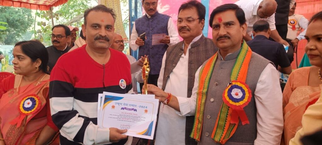 रतनपुर पेंड्रा मार्ग पर स्थित ग्राम तिलकाडीह में आयोजित एक गरिमा मय समारोह में केंद्रीय मंत्री श्री तोखन साहू जी ने सेवा एक नई पहल के कार्यकर्ताओं को सम्मानित किया ~ संस्था के सक्रिय सदस्य ऑक्सिजन मेन राजेश खरे जी व सहयोगी शिक्षक नारायण नायक जी को शाल श्री फल व सम्मान चिन्ह देते हुए माननीय मंत्री ने कहा कि संस्था विगत आठ नौ वर्षों से वनांचल क्षेत्रों के अलग अलग गांवों में जाकर स्वास्थ्य शिक्षा व महिला स्वालंबन हेतु जो जागरूकता अभियान चला रही है वह वास्तव में काबिले तारीफ है इस गरिमा मय सम्मान प्राप्ति पर जिला उद्योग संघ के अध्यक्ष अनिल सलूजा ने संस्था के संयोजक गण रेखा आहुजा , माधव मुजुमदार व सतराम जेठमलानी सहित सभी सहयोगी सदस्यों को बधाई प्रेषित करते हुए आशा व्यक्त करी कि यह संस्था सिर्फ बिलासपुर या छत्तीस गढ़ ही नहीं अपितु राष्ट्र स्तर पर भी अपनी सेवाएं दे ऐसा हम सबका सम्मिलित प्रयास रहेगा संस्था के पथ प्रदर्शक डॉ अजित मिश्रा ने इस अवसर पर हर्ष व्यक्त करते हुए कहा कि वैसे तो बिलासपुर शहर में सभी सामाजिक संगठन अच्छे अच्छे कार्य कर रहे हैं पर सेवाओं को सांगठनिक स्वरूप दे उन्हें जन जन तक पहुंचाना उल्लेखनीय कार्य है जो सेवा क्षेत्र में एक अभिनव मिसाल भी बन गई है।
