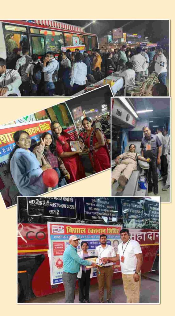 इसी कड़ी में संस्था द्वारा 31 दिसंबर मंगलवार को *मॉडल ब्लड बैंक के सहयोग से* शाम 04 बजे से रात्रि 08 बजे तक और 01 जनवरी बुधवार को *आशीर्वाद ब्लड सेंटर के सहयोग से* शाम 05 बजे से रात्रि 09 बजे तक दोनों दिवस *मरीन ड्राइव तेलीबाँधा में* विशाल रक्तदान शिविर का आयोजन कराया गया था ।