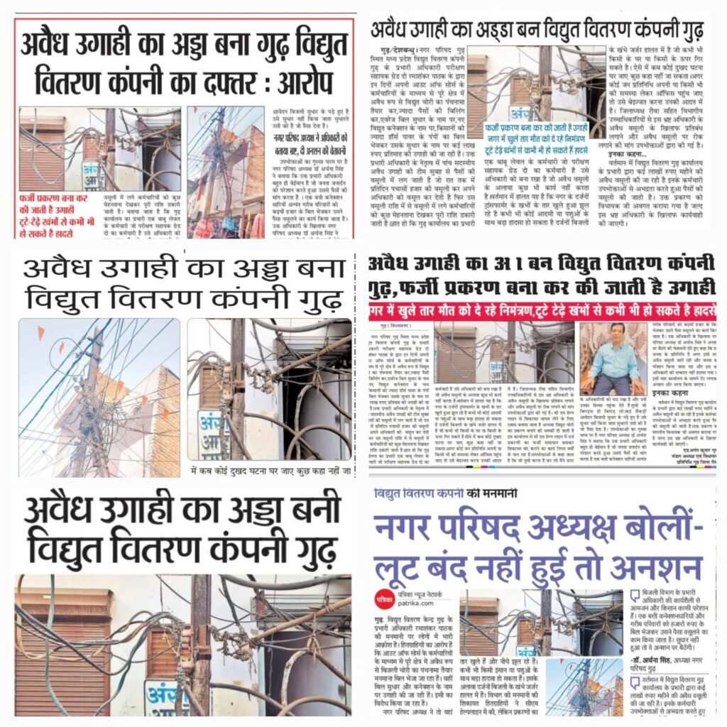 वर्तमान में विद्युत वितरण गुढ़ कार्यालय के प्रभारी द्वारा कई लाखों रुपए महीने की अवैध वसूली की जा रही है इनके कर्मचारी उपभोक्ताओं से अभद्रता करते हुआ पैसों की वसूली की जाती है।उक्त प्रकरण को माननीय विधायक जी अवगत कराया गया है जल्द इस भ्रष्ट अधिकारी के खिलाफ कार्यवाही की जाएगी।