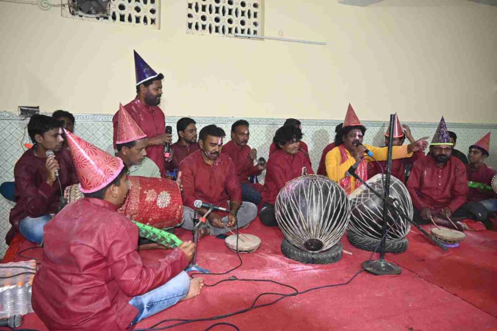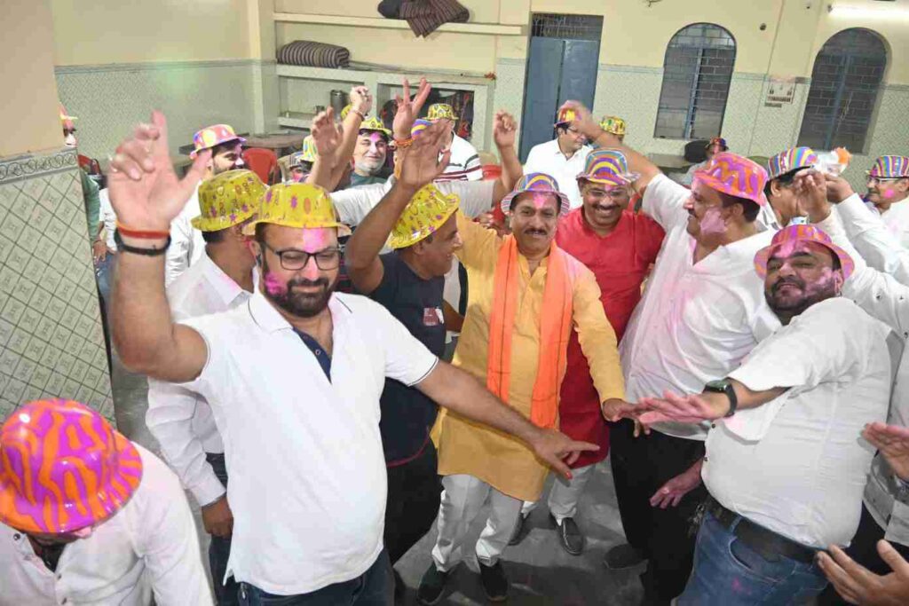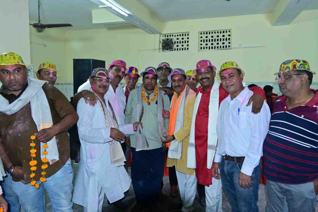भांग मंडली चंदन यादव के द्वारा शानदार गीत व भजन गाए गए उसे सुनकर सभी लोग नाचने लगे और झूमने लगे आए हुए सभी लोगों ने एक दूसरे को गुलाल वह कलर तिलक लगाकर होली की बधाई दी वह गले मिले