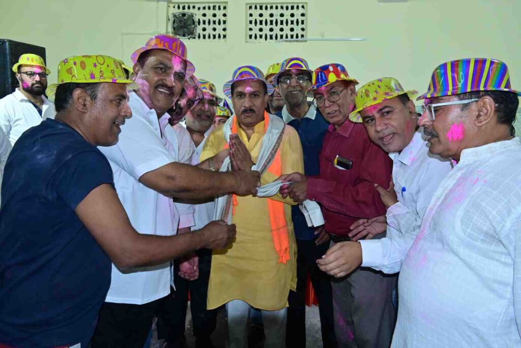 इस अवसर पर वार्ड पार्षद अमित तिवारी पूज्य सिंधी पंचायत आजाद नगर के अध्यक्ष बृजलाल नागदेव सतीशलाल युवा विंग के अध्यक्ष संतोष नागदेव अमर कुमार रुपानी समाज सेवी सुनील आहूजा वरिष्ठ पत्रकार विजय दुसेजा, वह कई अन्य वरिष्ठ जनो का शाल पहनाकर ,श्रीफल देकर, फूलों की माला पहनाकर स्वागत और सम्मान किया गया वार्ड पार्षद अमित तिवारी ने इस अवसर पर समाज के लोगों को होली की अग्रिम शुभकामनाएं दी और कहा कि होली प्रेम का प्यार का त्यौहार है इसे सभी समाज के लोगों को आपसी भाईचारा बनाकर त्योहार को मनाना चाहिए और कुछ दिन पूर्व हुए नगरी निकाय चुनाव में मुझे जो जीत हासिल हुई है उसमें समस्त वार्ड वासीयो के साथ-साथ सिंधी समाज का भी बड़ा योगदान है
