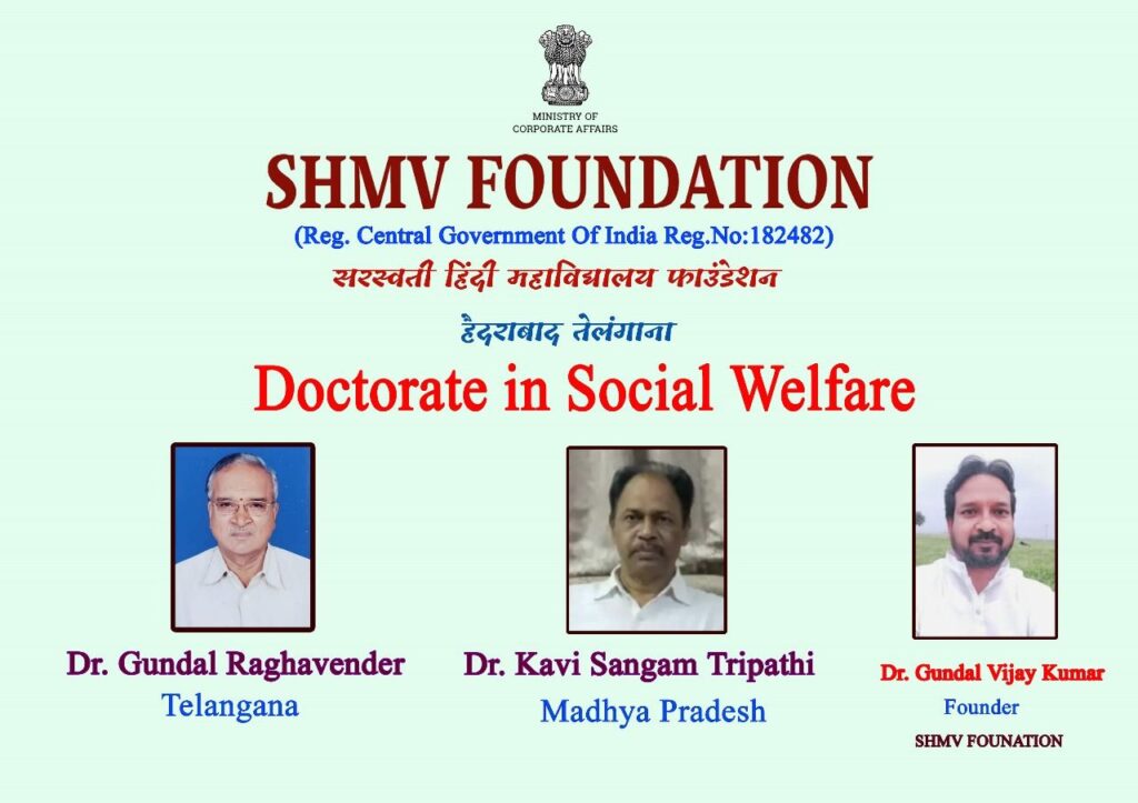डॉ गुंडाल राघवेंधर जी व डॉ कवि संगम त्रिपाठी जी को संस्था ने गौरव डॉक्टरेट की मानद पत्र प्रदान करके गौरव महसूस हो कर रही है। अपनी स्तर और भाषाओ को प्रचार करना, भाषा को बचाने का कार्य करके, बच्चों को सिखाना, पढ़ाना मुख्य लक्ष्य बनाकर हजारों लोगों को अपना भाषा सिखाया है। ये बहुत गर्व की बात है। आप लोग देश की सेवा कर रहे है। संस्था ने आपके देश सेवा के लिए गौरव डाक्टरेट की मानद उपाधि फाउंडेशन द्वारा दिया जा रहा है।