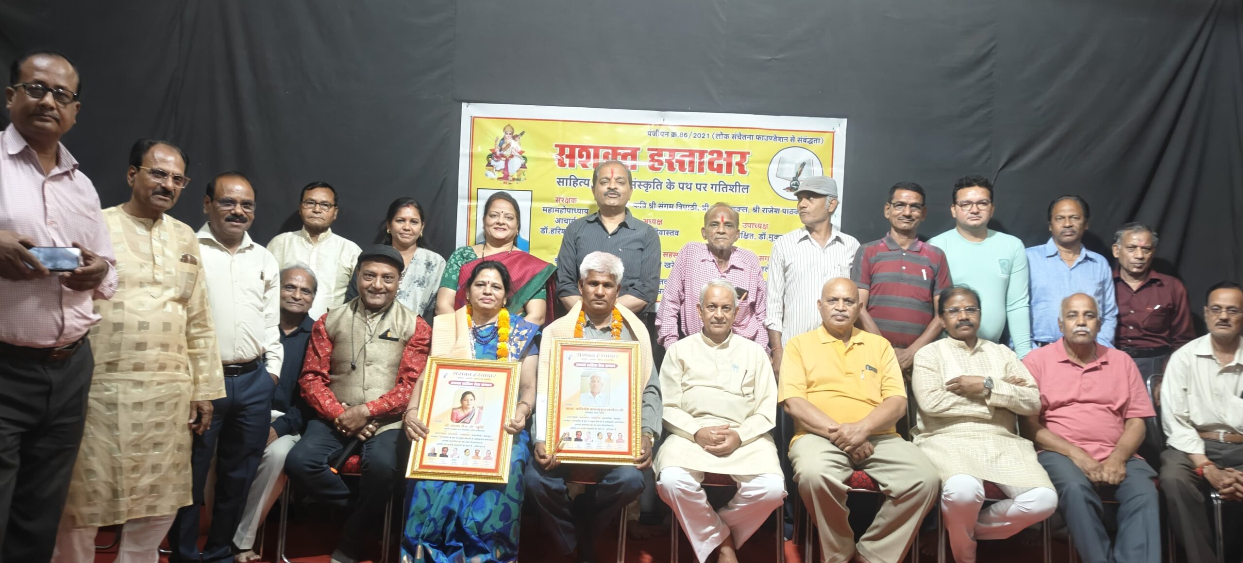 इस शुभ अवसर पर सशक्त हस्ताक्षर द्वारा डॉ. संध्या जैन श्रुति को साहित्य के क्षेत्र में उत्कृष्ट उपलब्धियों हेतु, एवं बालमुकुंद लखेरा को सशक्त हस्ताक्षर की गोष्ठी में नियमित उपस्थिति व प्रस्तुति हेतु शाल,कलमश्री, मानपत्र भेंट कर साहित्य सेवा सम्मान प्रदान किया गया ၊ मुख्य अतिथि की आसंदी से बोलते बताया होली स्नेह और प्रेम का त्यौहार है ၊ डॉ. हरिशंकर दुबे ने सद्भाव का उत्सव बताया।