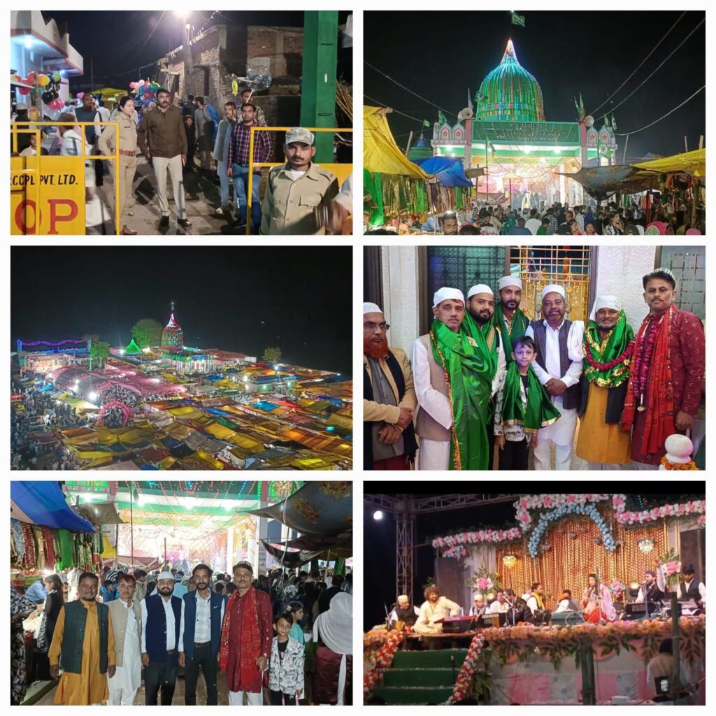 *मुकुन्दपुर में चल रहे हज़रत शाहताज मुहिब्बेअली रहमतुल्लाह के सालाना उर्स के तीसरे कुल के मौके पर चल रही शानदार कब्बाली फनकार फैजान रजा अजमेरी और कब्बाला सनम वारसी मुरादाबाद के बीच चल रहा कब्बाली का शानदार प्रोग्राम पुलिस प्रशासन की निगरानी के बीच चल रहा कब्बाली का कार्यक्रम।