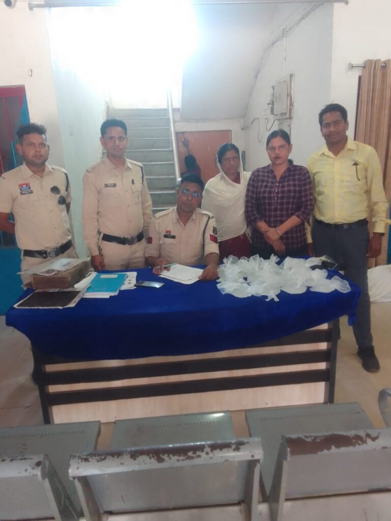 विशेष संवाददाता हरिकिशन गंगवानी चकरभाठा जिला बिलासपुर छत्तीसगढ़ अपराध क्रमांक 132/2025धारा 34(2) आबकारी अधिनियमथाना चकरभाठा पुलिस द्वारा अवैध रूप से महुआ शराब बिक्री करने वाली महिला को किया गिरफ्तार।महिला का कब्जे से बिक्री करने हेतु रखे 42 पांव पॉलीथिन में रखे 10.5 लीटर महुआ शराब किया गया जप्त।नाम आरोपिया – रमला बंजारे पति स्व घनश्याम बंजारे उम्र 50 वर्ष निवासी ग्राम नागरडीह थाना चकरभाठा जिला बिलासपुर।मामले का विवरण इस प्रकार है कि दिनांक 23.03.2025 को ग्राम नागरडीह में एक महिला द्वारा भारी मात्रा में अवैध रूप से महुआ शराब रखकर बिक्री करने की सूचना प्राप्त होने पर श्रीमान वरिष्ठ पुलिस अधीक्षक महोदय बिलासपुर श्री रजनेश सिंह के निर्देशानुसार, अतिरिक्त पुलिस अधीक्षक महोदय श्री अनुज कुमार एवं नगर पुलिस अधीक्षक महोदय श्रीमती रश्मित कौर चावला के मार्गदर्शन में तत्काल थाना चकरभाठा से स्टाफ रवाना कर महिला के घर को घेराबंदी कर रेड कार्यवाही किया गया। महिला के कब्जे से 42 पाव प्लास्टिक पन्नी में भरा हुआ 10.5 लीटर महुआ शराब जप्त कर महिला के विरुद्ध आबकारी अधिनियम की धारा 34(2) के अनुसार कार्यवाही कर रिमांड पर माननीय न्यायालय पेश किया गया है।प्रकरण की उक्त कार्यवाही में वरिष्ठ अधिकारियों के निर्देशन एवं मार्गदर्शन में थाना प्रभारी चकरभाठा उत्तम कुमार साहू, प्रधान आरक्षक प्रभाकर सिंह, आरक्षक सुधीर कश्यप, योगेंद्र खूंटे, रामकुमार बघेल, मनीष साहू एवं महिला आरक्षक गोपालिनी साहू, प्रियंका सिंह, आशा साहू का विशेष योगदान रहा।