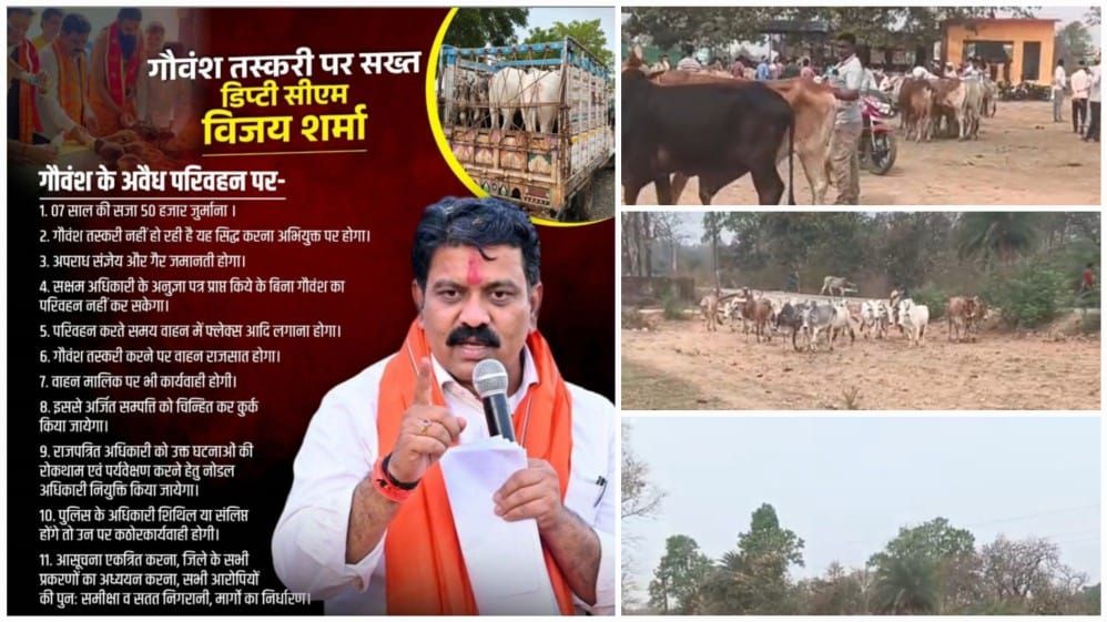 *सरकार के सख्त आदेश, फिर भी बेखौफ तस्कर :* डिप्टी सीएम विजय शर्मा द्वारा जारी नए आदेश के तहत गौवंश के अवैध परिवहन पर सात साल तक की सजा और 50,000 रुपये तक जुर्माने का प्रावधान किया गया है। अपराध को गैर-जमानती और संज्ञेय घोषित किया गया है। सक्षम अधिकारी की अनुमति के बिना गौवंश का परिवहन पूरी तरह प्रतिबंधित कर दिया गया है। साथ ही,