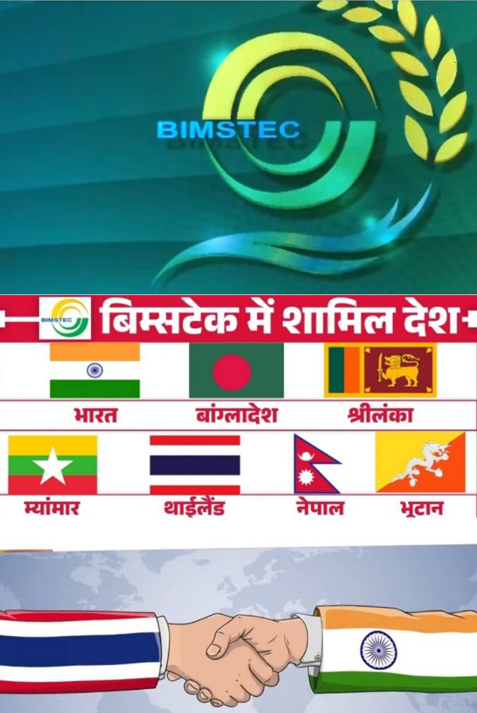 साथियों बात अगर हम बिम्सटेक को अतीत के झरोखे से देखें तो,बिम्सटेक का पूरा नाम बंगाल की खाड़ी बहु-क्षेत्रीय तकनीकी और आर्थिक सहयोग पहल (बिमस्टेक) है। यह एक क्षेत्रीय संगठन है जिसमें बंगाल की खाड़ी के आसपास स्थित सात सदस्य देश शामिल हैं। इस उप-क्षेत्रीय संगठन की स्थापना 6 जून 1997 को बैंकॉक घोषणा के माध्यम से की गई थी। सात सदस्य देशों में दक्षिण एशिया के पांच देश- बांग्लादेश, भूटान, भारत, नेपाल और श्रीलंका- और दक्षिण-पूर्व एशिया के दो देश- म्यांमार और थाईलैंड शामिल हैं। मूल रूप से, इस ब्लॉक की शुरुआत चार सदस्य देशों के साथ हुई थी, जिसका नाम बिमस्टेक (बांग्लादेश, भारत, श्रीलंका और थाईलैंड आर्थिक सहयोग) था।22 दिसंबर 1997 को, म्यांमार बैंकॉक में एक विशेष मंत्रिस्तरीय बैठक के दौरान शामिल हुआ, जिसके परिणामस्वरूप समूह का नाम बदलकर ‘बिमस्टेक (बांग्लादेश, भारत, म्यांमार, श्रीलंका और थाईलैंड आर्थिक सहयोग) कर दिया गया। छठी मंत्रिस्तरीय बैठक (फरवरी 2004, थाईलैंड) में नेपाल और भूटान को शामिल करने के परिणामस्वरूप संगठन का वर्तमान नाम ‘बहु-क्षेत्रीय तकनीकी और आर्थिक सहयोग के लिए बंगाल की खाड़ी पहल’ (बिमस्टेक) रखा गया। बिम्सटेक के सदस्य देश व्यापार, निवेश और विकास; कृषि, मत्स्य पालन और पशुधन; पर्यटन; सुरक्षा; पर्यावरण और जलवायु परिवर्तन; और विज्ञान, प्रौद्योगिकी और नवाचार सहित विभिन्न क्षेत्रों में सहयोग करते हैं। थाईलैंड 2022 से अध्यक्ष है और बांग्लादेश अगले स्थान पर है।