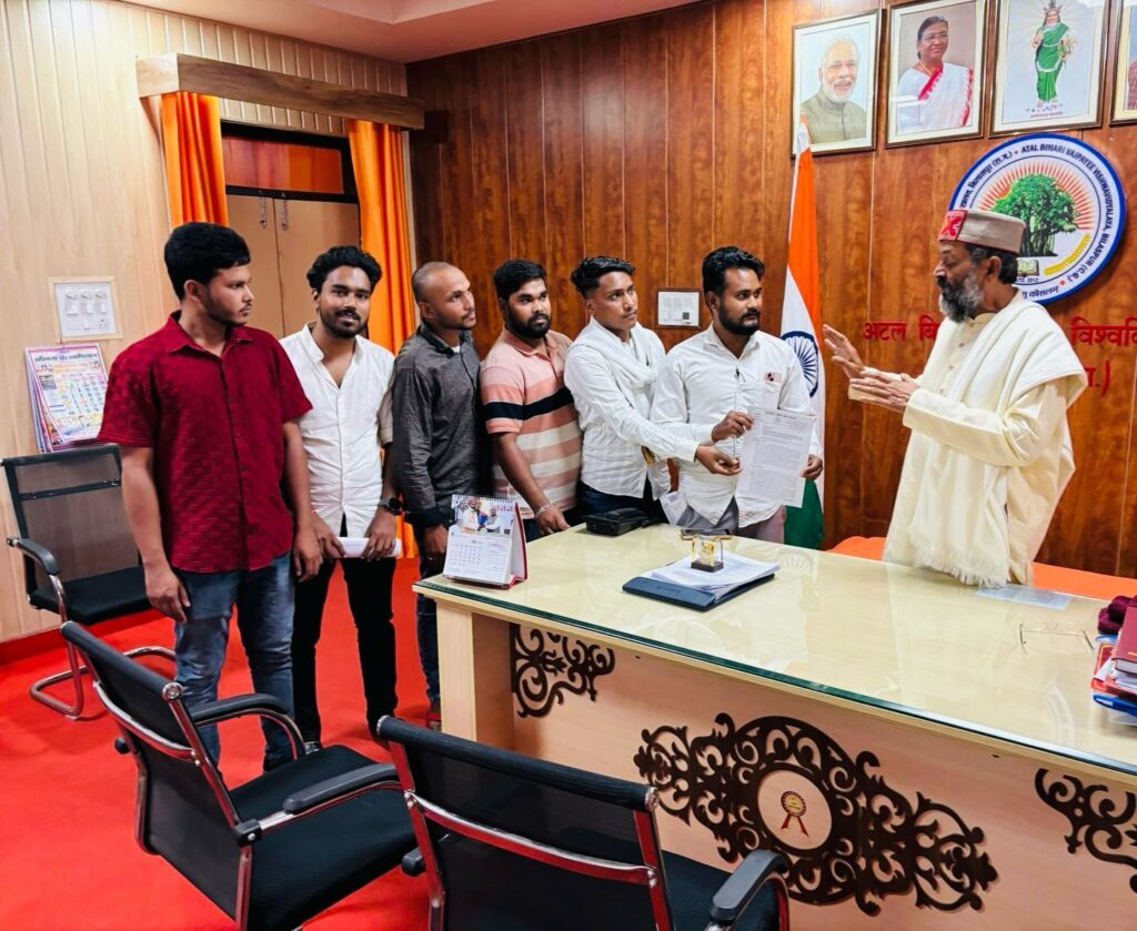 बिलासपुर। अटल बिहारी वाजपेयी विश्वविद्यालय में व्याप्त भ्रष्टाचार, वित्तीय अनियमितता और प्रशासनिक गड़बड़ियों को लेकर एनएसयूआई के छात्रों ने 13 दिनों तक नियमित रूप से यूनिवर्सिटी के सामने प्रदर्शन किया। छात्रों के प्रदर्शन और जिला प्रशासन के हस्तक्षेप के बाद शुक्रवार को एनएसयूआई प्रतिनिधिमंडल से अटल बिहारी वाजपेयी विश्वविद्यालय के कुलपति अरुण दिवाकर नाथ वाजपेयी ने मुलाकात करने बुलाया। इस दौरान एनएसयूआई के प्रदेश सचिव रंजेश सिंह के नेतृत्व में प्रतिनिधियों ने कुलपति से लगभग आधे घंटे तक चर्चा की और सभी मामलों में दस्तावेज सहित राज्यपाल के नाम ज्ञापन सौंपा।