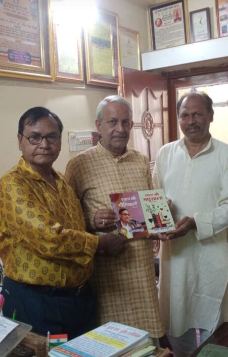 महामहोपाध्याय आचार्य हरिशंकर दुबे जी को किताबें भेंट की – कवि संगम त्रिपाठी जबलपुर - महामहोपाध्याय आचार्य हरिशंकर दुबे जी को श्याम फतनपुरी की दो किताबें श्याम की मधुशाला व श्याम की गीतिकाएं कवि संगम त्रिपाठी ने भेंट की। दोनों कृतियों में महामहोपाध्याय आचार्य हरिशंकर दुबे जी ने अपनी लेखनी से मंगल भाव अभिव्यक्त किएं है। श्याम फतनपुरी प्रयागराज के सिद्धहस्त कवि है व अनेकों सम्मानों से सम्मानित किये जा चुके हैं। श्याम फतनपुरी ने श्याम की मधुशाला व श्याम की गीतिकाएं बड़े मनोभाव से छन्दबद्ध गेय काव्य विधा में लिखी है। इस अवसर पर कवि संगम त्रिपाठी संस्थापक प्रेरणा हिंदी प्रचारिणी सभा के साथ गणेश श्रीवास्तव प्यासा जबलपुरी संस्थापक सशक्त हस्ताक्षर संस्था उपस्थित रहे।