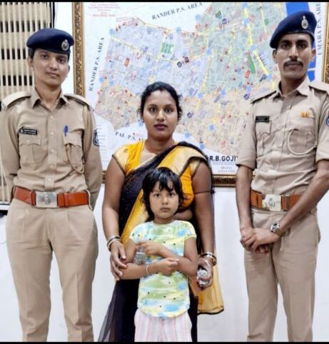 सूरत शहर के अड़ाजण क्षेत्र की निवासी 4 साल की बालिका रिया घुमते हुए अपने घर से दुर चली गई और रास्ता भुल कर भटक गई।