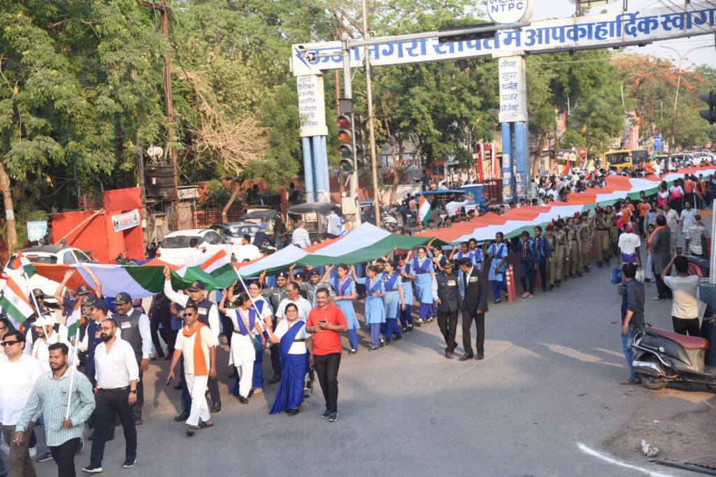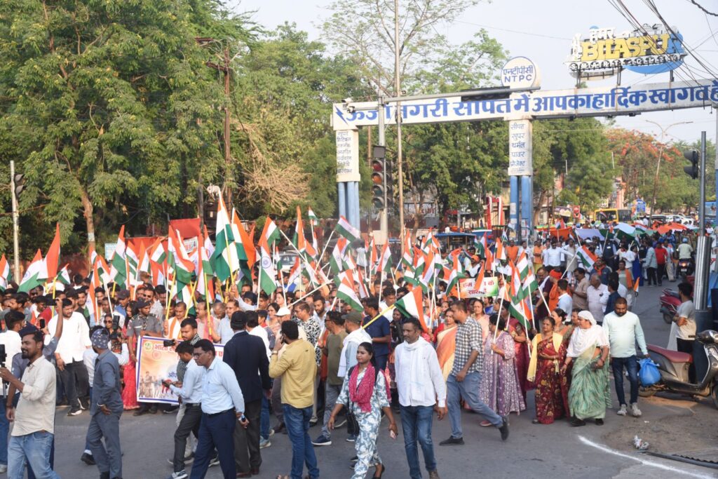 तिरंगे के सम्मान में आज तिरंगा यात्रा की शुरुआत मिनी स्टेडियम गांधी चौक से शुरू होकर लखीराम अग्रवाल ऑडिटोरियम में समाप्त हुई। बच्चों, युवाओं, महिलाओं और बुजुर्गों ने भी पूरे जोश और उत्साह के साथ भागीदारी निभाई। यात्रा के दौरान ‘भारत माता की जय’, ‘वंदे मातरम्’ और ‘जय हिंद’ के नारों से सम्पूर्ण वातावरण देशभक्ति से गूंज उठा। तिरंगा यात्रा में पूर्व सैनिक, स्कूली छात्र, एनसीसी, एनएस एस, स्काउट, खिलाड़ी, सामाजिक संस्थाओं के प्रतिनिधि, जनप्रतिनिधि और प्रबुद्ध नागरिक शामिल हुए। जिला पंचायत उपाध्यक्ष श्रीमती ललिता संतोष कश्यप, जिला पंचायत सदस्य श्री गोविंद वैष्णव, श्रीमती हर्षिता पांडे, श्री दीपक सिंह सहित अन्य जनप्रतिनिधि,नगर निगम कमिश्नर श्री अमित कुमार, जिला पंचायत सीईओ श्री संदीप अग्रवाल, जिला सैनिक कल्याण अधिकारी श्री हरिदत्त तिवारी, जिला शिक्षा अधिकारी श्री अनिल तिवारी, एडीपीओ श्री रामेश्वर जायसवाल, श्री वासुदेव पांडे, डीएमसी श्री ओम पांडे, जिला क्रीड़ा अधिकारी श्री सुशील मिश्रा, एनएनएनएस के प्रभारी श्री मनोज सिंहा, अरपा अर्पण अभियान के श्री श्याम मोहन दुबे सहित अन्य लोगों ने शिरकत की।