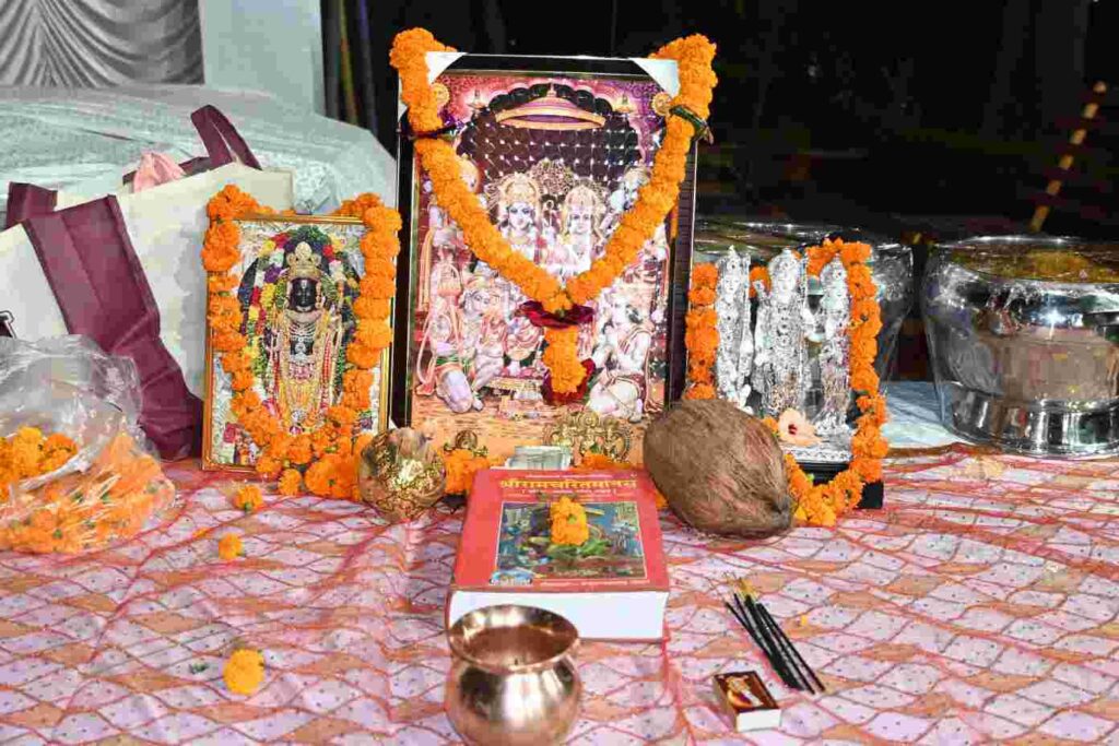 कार्यक्रम की शुरुआत भगवान श्री रामचंद्र जी माता सीता जी भ्राता लक्ष्मण जी व भक्त हनुमान जी के फोटो पर पुष्प अर्पित कर दीप प्रज्ज्वलित करके की गई