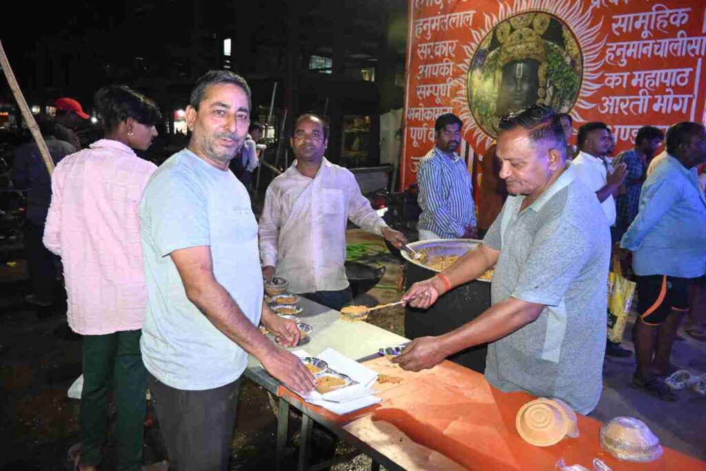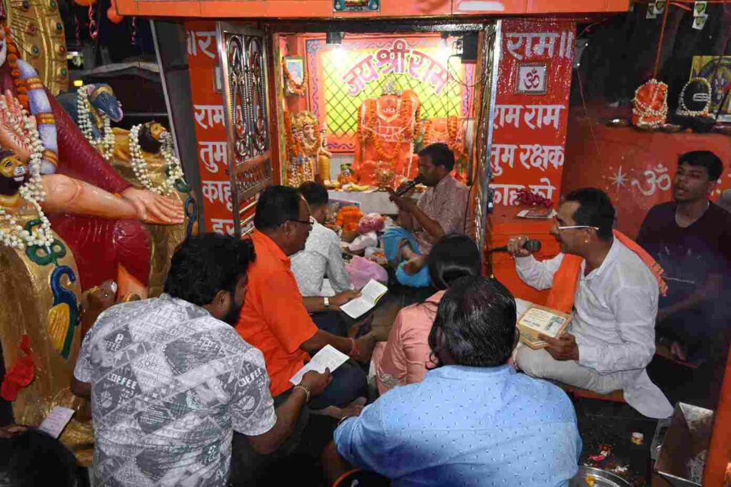 इस कड़ी में आज भी कार्यक्रम का आयोजन किया गया कार्यक्रम संध्या 6:30 बजे हवन किया गया 7:00 बजे महा आरती की गई 7:30 बजे सामूहिक रूप से श्री हनुमान चालीसा का पाठ किया गया विधि विधान के साथ पूजा अर्चना करने के बाद प्रसाद के रूप में खिचड़ी ,बूंदी ,सूजी का हलवा, एवं शरबत वितरण किया गया बड़ी संख्या में भक्तों ने प्रसाद ग्रहण किया