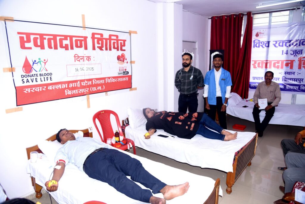 बिलासपुर,14 जून 2025 / आज रक्त दान दिवस के खास अवसर पर प्रधान डाकघर में अधीक्षक श्री विनय प्रसाद के नेतृत्व में रक्तदान शिविर का आयोजन किया गया। सिविल सर्जन डॉ अनिल गुप्ता , ब्लड बैंक हेड डॉक्टर अनुभव वर्मा के सहयोग से यह आयोजन हुआ।