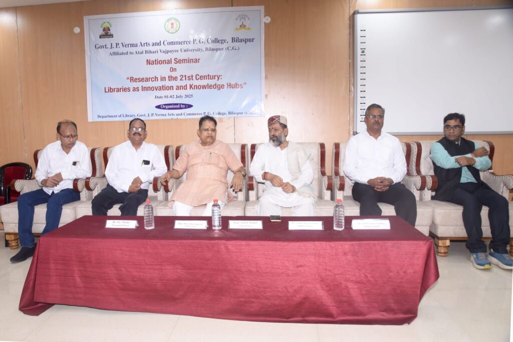 बिलासपुर :- शासकीय जे.पी. वर्मा स्नातकोत्तर कला एवं वाणिज्य महाविद्यालय, बिलासपुर द्वारा दिनांक 1 एवं 2 जुलाई 2025 को ग्रंथालय विज्ञान से संबंधित विषय पर दो दिवसीय राष्ट्रीय संगोष्ठी का आयोजन किया जा रहा है। संगोष्ठी का शुभारंभ आज महाविद्यालय के सभागार में भव्य रूप से किया गया।
