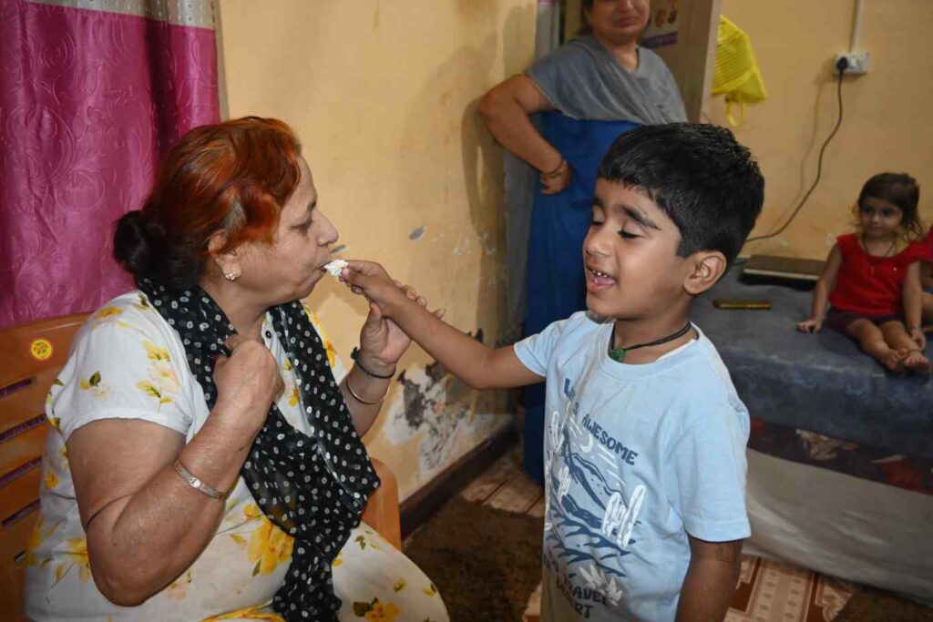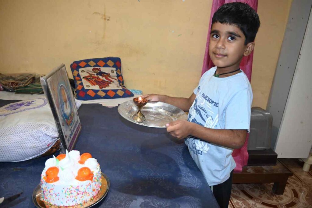 केक काटकर भोग लगाया गया एवं सभी लोगों में वितरण किया गया