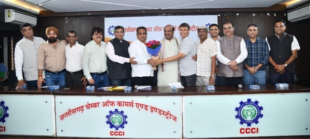 छत्तीसगढ़ चेम्बर ऑफ कॉमर्स एंड इंडस्ट्रीज के कार्यकारिणी समिति की बैठक आज दिनांक 8 जुलाई 2025 को दोपहर 12 बजे चेम्बर कार्यालय चै.देवीलाल व्यापार उद्योग भवन बाम्बे मार्केट, रायपुर में आयोजित हुई। तत्पश्चात् विषय सूची के अनुसार बैठक की कार्यवाही प्रारंभ हुई जिसमें पिछली कार्यकारिणी की बैठक की कार्यवाही का पठन एवं अनुमोदन, लगभग 80 प्राप्त नये सदस्यता आवेदन पत्रों की सूक्ष्म जांच के पश्चात