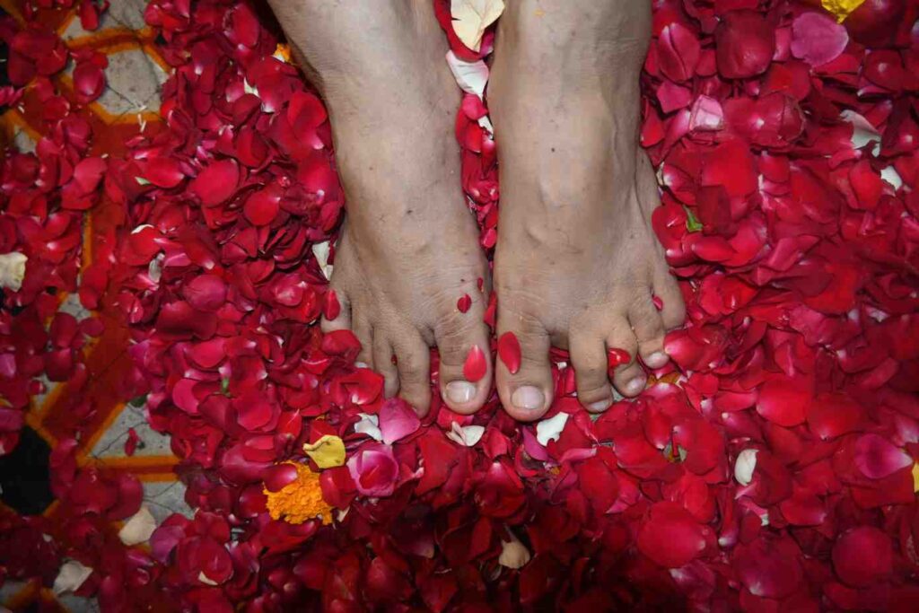 देश के अलग-अलग प्रदेशों के शहरों से आए हुए भक्तजनों,व शिष्यो ने सतगुरु महंत अनंतपुरी गोस्वामी जी की पूजा अर्चना की शुरुआत में एक बड़े से बर्तन में गुरु के चरणों को गंगाजल ओर दूध से अभिषेक किया गया गुलाब की पंखुड़ियां से रखकर,