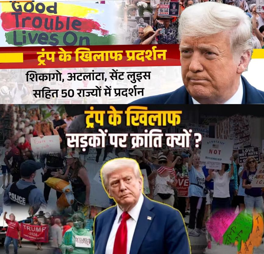 साथियों बात अगर हम अमेरिका में ट्रंप की नीतियों के खिलाफ़ प्रदर्शनों की करें तो,अमेरिका के राष्ट्रपति ट्रंप दुनियाँ भर में ट्रेड और टैरिफ वार छेड़ने के साथ अपने कई अन्य अजीबोगरीब फैसलों के चलते अपने ही देश में घिर गए हैं। गत 2 दिनों से ट्रंप के खिलाफ अमेरिका के विभिन्न शहरों में जोरदार विरोध प्रदर्शन हो रहाहैअमेरिकी जनता ट्रंप की कई नीतियों के विरोध में सड़क पर उतर आई है। पूरे देश में प्रदर्शनकारियों ने ट्रंप प्रशासन और उनकी नीतियों के खिलाफ पोस्टर, बैनर और नारों के साथ अपनी असंतुष्टि जाहिर की है। ‘गुड ट्रबल लाइव्स ऑन’ नामक विरोध आंदोलन ने देश के सभी 50 राज्यों में अपनी उपस्थिति दर्ज कराई। न्यूयॉर्क में प्रदर्शनकारियों को इमिग्रेशन एंड कस्टम्स एनफोर्समेंट भवन के पास एक चौराहे को अवरुद्ध करते हुए देखा गया। एक विरोध प्रदर्शन के दौरान, जब प्रदर्शनकारी एक इमिग्रेशन कोर्ट के बाहर इकट्ठा हुए तो उन्होंने ट्रंप प्रशासन के खिलाफ ‘गुड ट्रबल लाइव्स ऑन’ राष्ट्रीय विरोध दिवस के तहत तख्तियां थाम रखी थीं।ट्रंप के खिलाफ यह प्रदर्शन अटलांटा (जॉर्जिया), सेंट लुइस (मिसौरी), ओकलैंड (कैलिफोर्निया), और एनापोलिस (मैरीलैंड) समेत करीब 1600 जगहों पर हुआ। इसमें ट्रंप प्रशासन की स्वास्थ्य देखभाल में कटौती, इमिग्रेशन नीतियों और अन्य फैसलों की खिलाफत की गई। इसका उद्देश्य दिवंगत कांग्रेस सदस्य और नागरिक अधिकारों के नेता जॉन लुईस को श्रद्धांजलि देना भी।