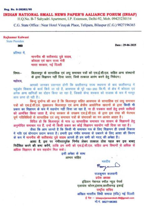के बिलासपुर प्रवास के दौरान एस.ई.सी.एल.गेस्ट हाउस में मैंने उनसे सौजन्य भेंट कर एक ज्ञापन दिया था कि साप्ताहिक समाचार पत्रों को