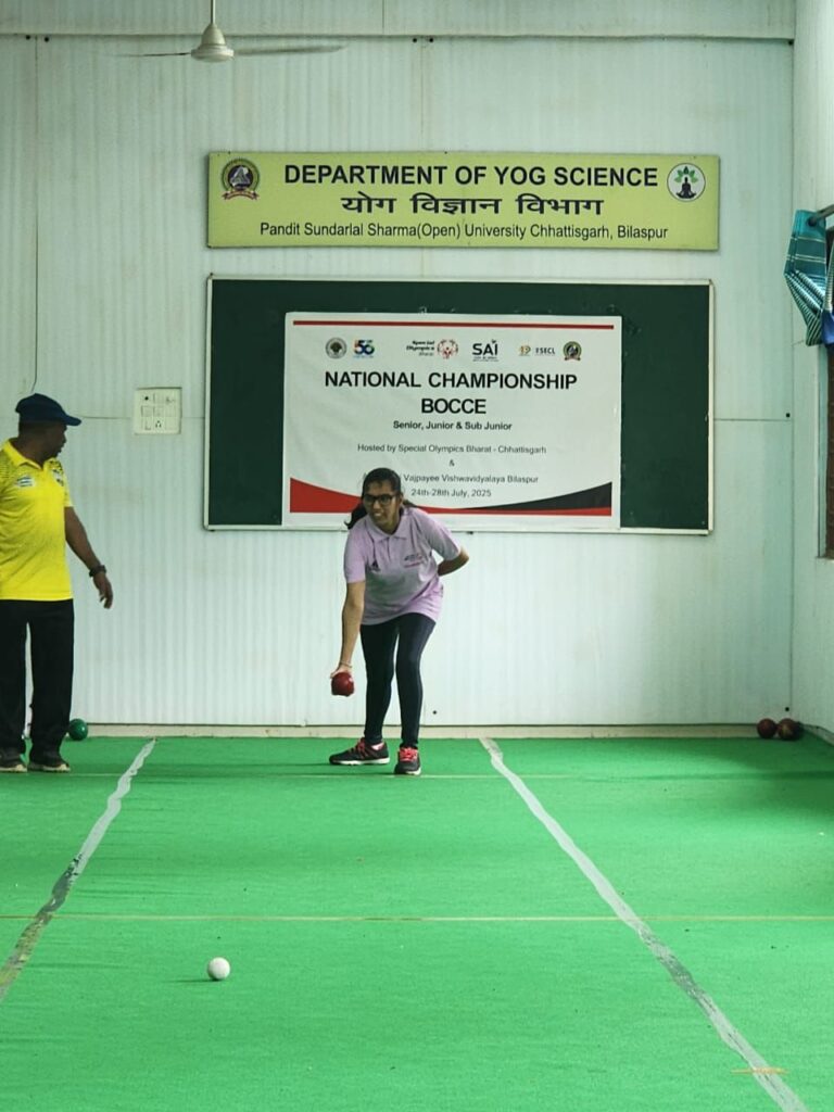 बिलासपुर, 31 जुलाई 2025/स्पेशल ओलंपिक भारत छत्तीसगढ़ एवं अटल बिहारी वाजपेयी विश्वविद्यालय के संयुक्त तत्वावधान में राष्ट्रीय बोच्ची प्रतियोगिता का आयोजन 24 से 28 जुलाई तक पंडित सुंदरलाल शर्मा विश्वविद्यालय, बिलासपुर में किया गया। प्रतियोगिता में देशभर के 22 राज्यों से 250 बौद्धिक दिव्यांग एथलीट, 50 कोच और 20 रिसोर्स पर्सन शामिल हुए। जहां बौद्धिक रूप से दिव्यांग बच्चों ने अपनी खेल प्रतिभा का प्रदर्शन किया।