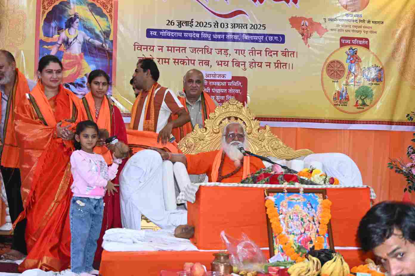 बिलासपुर :- सावन माह में कहते हैं यह एक माह भक्ति सिमरन दान पुण्य और पूजा कर्म का माना जाता है भगवान भोलेनाथ की भक्ति में पूरा देश डूबा पड़ा है हर जगह हर गली मोहल्ला में पूजा पाठ कथा चल रही है इसी अवसर पर बिलासपुर की नगरी में भी श्री राम कथा का आयोजन सिंधु भवन तोरवा बिलासपुर में किया गया है