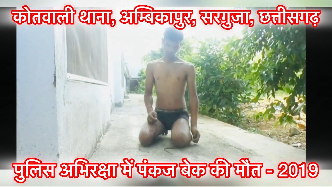 यह मामला 21-22 जुलाई 2019 की रात का है, जब अधीना सलका, सूरजपुर निवासी सीसीटीवी तकनीशियन पंकज कुमार बेक एक व्यापारी के निवास पर इंटरनेट/सीसीटीवी सुधारने गया था। उसके बाद उसे और उसके साथी को अम्बिकापुर कोतवाली पुलिस द्वारा हिरासत में लिया गया। अगले दिन पंकज की लाश अर्ध-फांसी की स्थिति में परमार हॉस्पिटल में मिली।