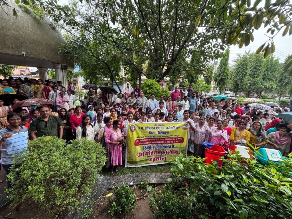 छत्तीसगढ़ में राष्ट्रीय स्वास्थ्य मिशन (एनएचएम) के 16,000 से अधिक कर्मचारी अपनी 10 सूत्रीय मांगों (नियमितीकरण, ग्रेड पे, पब्लिक हेल्थ कैडर की स्थापना, लंबित 27% वेतनवृद्धि सहित) को लेकर अनिश्चितकालीन हड़ताल पर चले गए हैं। आंदोलन के चलते पूरे प्रदेश की स्वास्थ्य व्यवस्था चरमरा गई है।