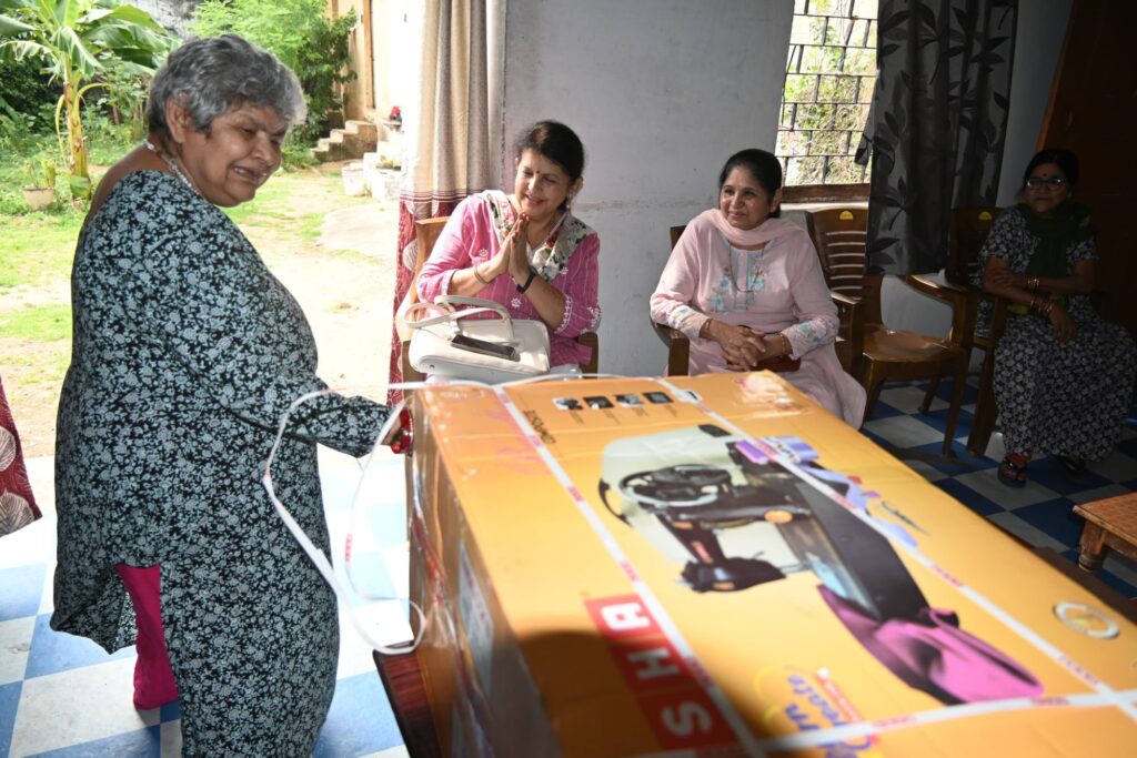 सपना ने कहा हम हम बड़े भाग्यशाली हैं कि ऐसा पुनीत कार्य करने का अवसर साधु वासवानी सेंटर को दिया जा रहा है और इस सेवा कार्यों में हमें भी सहयोग करने का अवसर मिल रहा है हम यह सेवा करेंगे और आज अपने वचन अनुसार सपना कलवानी चित्रा पंजवानी के द्वारा नई सिलाई मशीन लेकर पहुंचे विद्या आश्रम और उस यूवती को भेंट की जब उस यूवती को सिलाई मशीन मिली तो उसकी आंखों में जो खुशी की 🌟चमक थी और चेहरे में जो रौनक थी वह देखने लायक थी ऐसा लगा मानो उसके सपने पूरे हो गए और उसके हाथों में पंख लगे अब वह उड़ना चाहती थी उसने साधु वासवानी सेंटर का धन्यवाद किया ओर कहा कि भली मैं पांव से दिव्यांग हूं पर आपने मुझे मशीन प्रदान कर 🙏 मेरे हाथों को डबल मजबूती दी है अब मैं इससे अपने कपड़े व अन्य कपड़े सिलकर अपने आप आत्मनिर्भर बनूंगी,