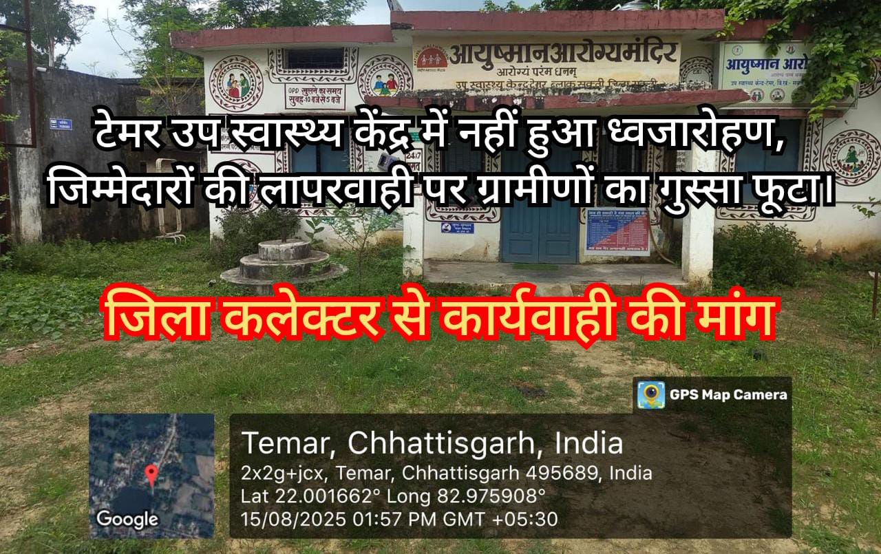 सक्ती। स्वतंत्रता दिवस जैसे पावन अवसर पर ग्राम टेमर स्थित उप स्वास्थ्य केंद्र में ध्वजारोहण तक न होना न केवल घोर लापरवाही है, बल्कि यह राष्ट्र की अस्मिता और गौरव के साथ खुला खिलवाड़ है। ग्रामीणों का कहना है कि यह घटना देशभक्ति की आत्मा को ठेस पहुंचाने वाली है और जिम्मेदार कर्मचारियों ने अपनी कर्तव्यनिष्ठा पर काला धब्बा लगाया है।