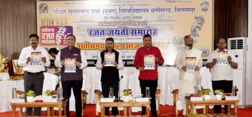 पंडित सुंदरलाल शर्मा (मुक्त) विश्वविद्यालय छत्तीसगढ़, बिलासपुर में “छत्तीसगढ़ राज्य के 25 वर्ष रजत जयंती समारोह” के उपलक्ष्य पर तीन दिवसीय राष्ट्रीय संगोष्ठी का आयोजन किया जा रहा है। आयोजन के उद्घाटन सत्र में विशिष्ट अतिथि सुशांत शुक्ला, विधायक बेलतरा, विशिष्ट अतिथि प्रोफेसर एडीएन बाजपेयी, कुलपति, अटल बिहारी विश्वविद्यालय व अध्यक्षता प्रोफेसर वी . के. सारस्वत, कुलपति, पंडित सुंदरलाल शर्मा विश्वविद्यालय उपस्थित रहे।