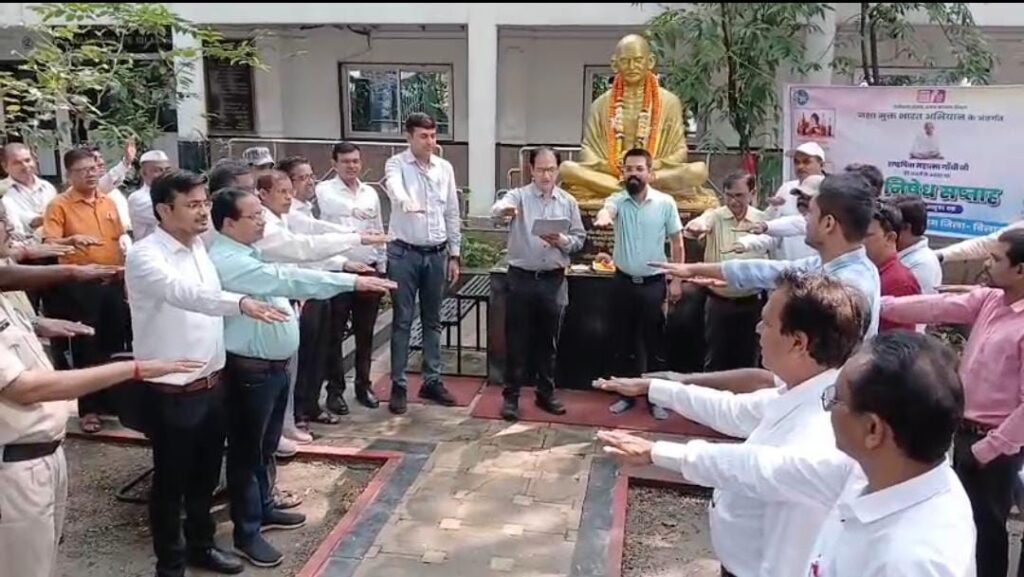नशामुक्ति के संबंध में जानजागरुकता के लिए समाज कल्याण विभाग द्वारा निकाले गए प्रचार रथ को हरी झंडी भी दिखाई। गांधी जी के प्रिय भजन वैष्णव जन तो तेने कहिए …. का सामूहिक गान भी किया गया। इस अवसर पर जिला पंचायत सीईओ संदीप अग्रवाल, एडीएम शिवकुमार बनर्जी, अपर कलेक्टर एसएस दुबे सहित विभागीय अधिकारी और कर्मचारी बड़ी संख्या में उपस्थित थे।
