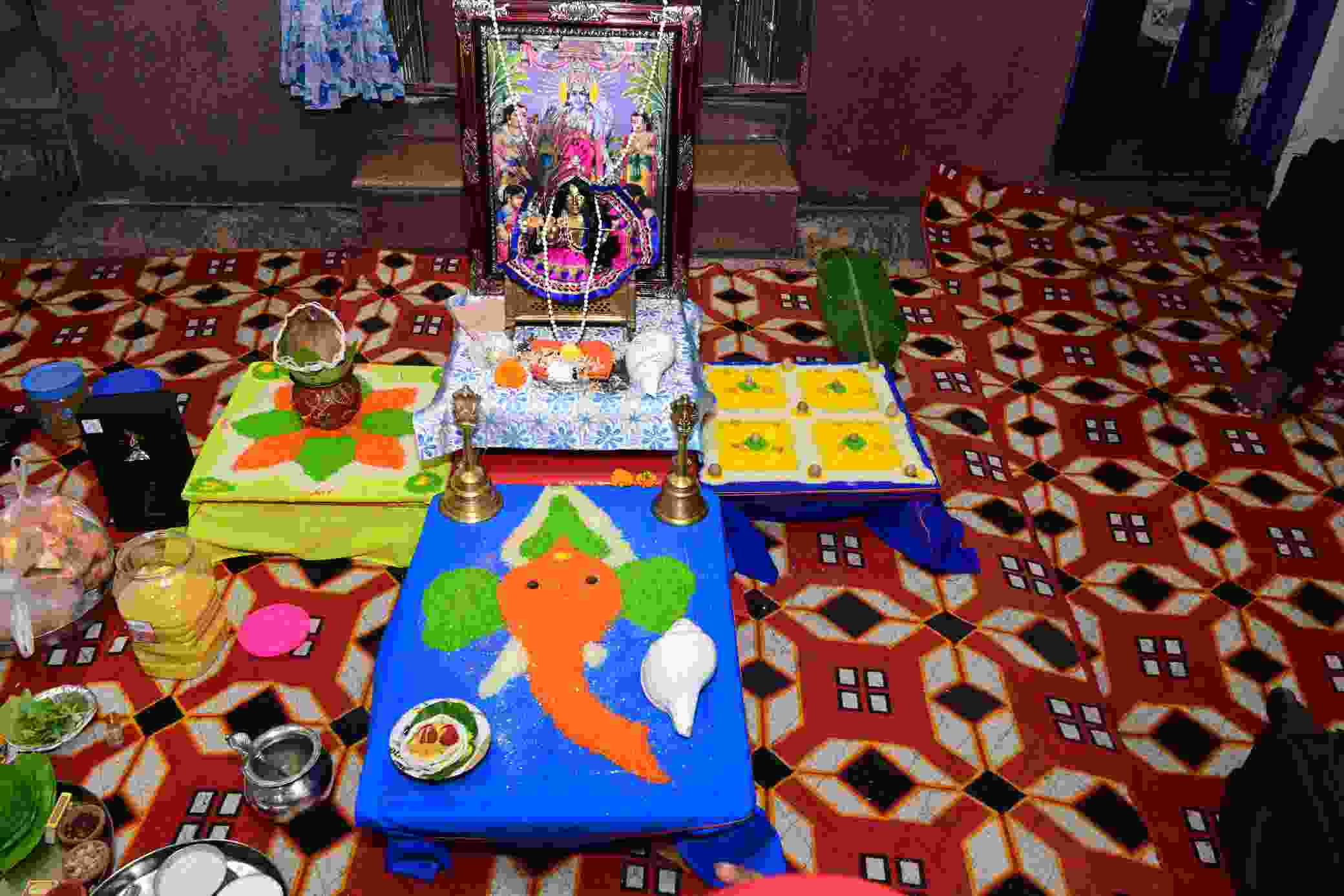 कथा के पूर्व बाल लड्डू गोपाल को पंचामृत से स्नान करा कर नए वस्त्र धारण कराए गए