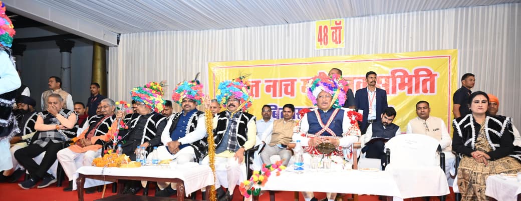 बिलासपुर, 15 नवंबर 2025/बिलासपुर के लाल बहादुर शास्त्री स्कूल मैदान में 48 वें रावत नाचा महोत्सव का भव्य आयोजन किया गया। नाचा महोत्सव में शामिल होने मुख्यमंत्री श्री विष्णुदेव लालबहादुर शास्त्री शाला प्रांगण पहुंचे। आगमन पर महोत्सव के संरक्षक श्री कालीचरण यादव एवं समिति सदस्यों द्वारा पुष्पहार पहनाकर उनका आत्मीय स्वागत किया गया। मुख्यमंत्री एवं अतिथियों ने भगवान श्री कृष्ण के छायाचित्र पर माल्यार्पण कर कार्यक्रम की विधिवत शुरुआत की।