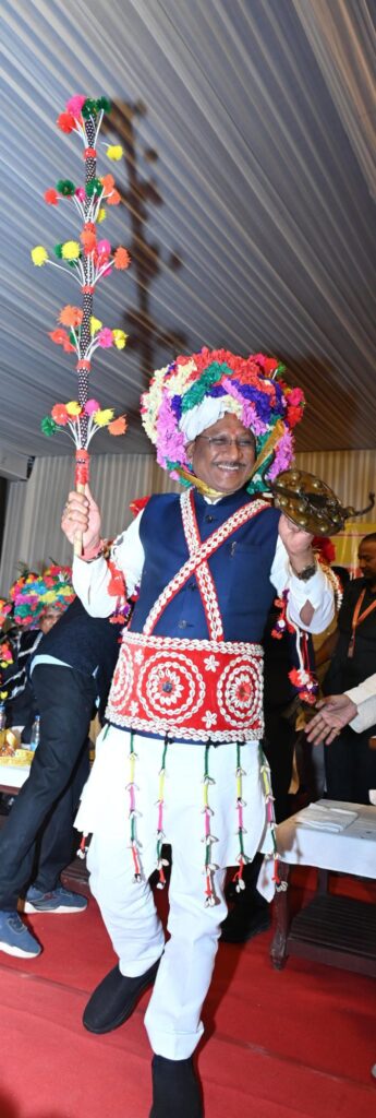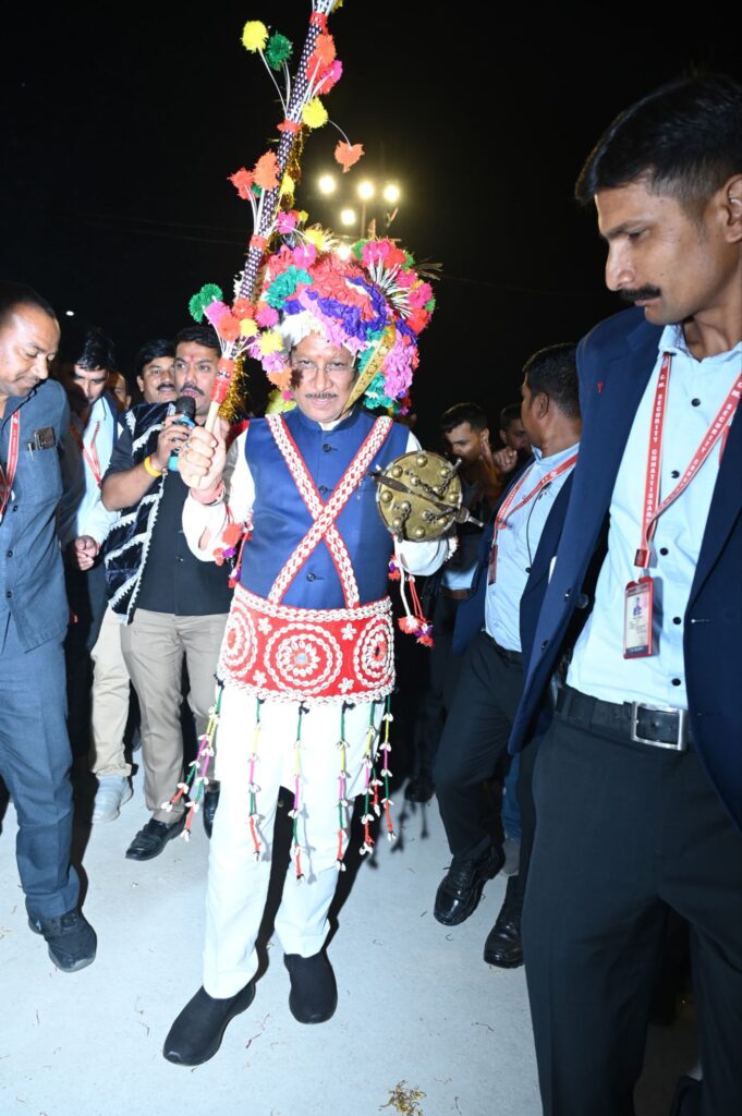 मुख्यमंत्री पारंपरिक वेशभूषा में रावत नर्तक दलों के बीच पहुंचे और ढोल–नगाड़ों की गूंजती धुन पर उनके साथ झूमते हुए कलाकारों का मनोबल बढ़ाया। उन्होंने नर्तन दलों की प्रस्तुति की सराहना करते हुए कहा कि यह सांस्कृतिक धरोहर आने वाली पीढ़ियों को प्रेरित करती रहेगी।