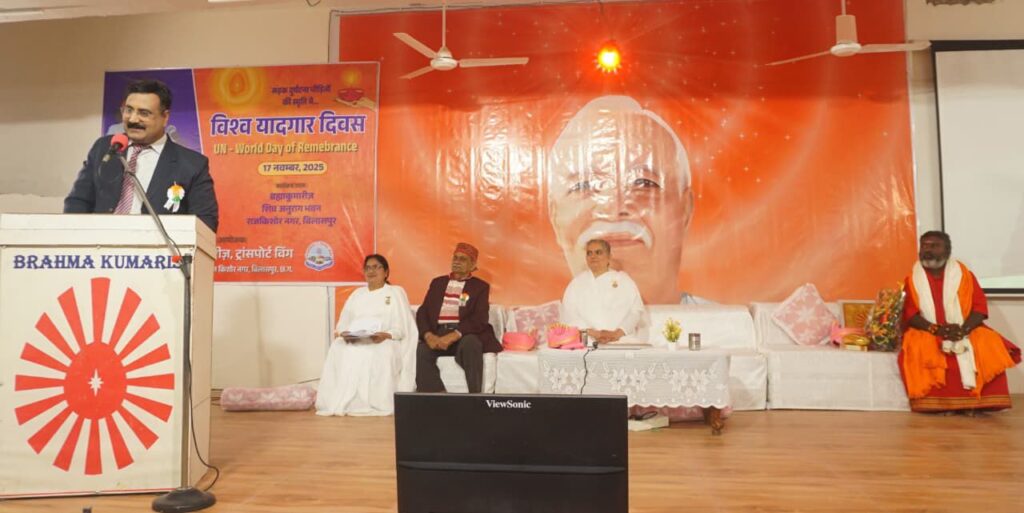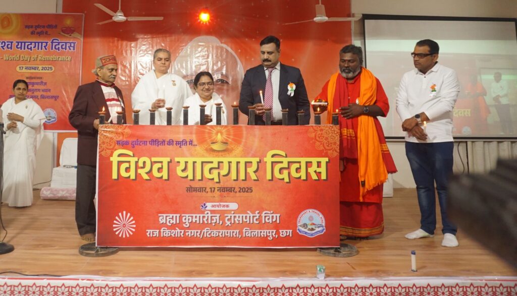 बिलासपुर, 17 नवंबर, 2025: प्रजापिता ब्रह्माकुमारी ईश्वरीय विश्वविद्यालय के ट्रांसपोर्ट विंग द्वारा बिलासपुर के शिव-अनुराग भवन में सड़क दुर्घटना पीड़ितों की स्मृति में विश्व यादगार दिवस के अवसर पर आयोजित ‘सुहाना सफर’ कार्यक्रम में, मुख्य वक्ता बी.के. कविता दीदी ने जीवन यात्रा को आध्यात्मिक दृष्टिकोण से देखने की प्रेरणा दी।