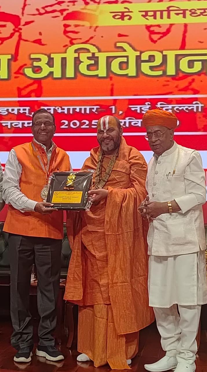 बिलासपुर ।डॉक्टर श्यामा प्रसाद मुखर्जी राष्ट्रीय विचार मंच ,नई दिल्ली ,संस्था के द्वारा संस्था के राष्ट्रीय अध्यक्ष एवं संस्थापक सुशील कुमार सरावगी जिंदल के अनुशंसा पर ,भारत की हृदय स्थल , भारत मंडपम, प्रगति मैदान, दिल्ली ,में गत दिवस संस्था के राष्ट्रीय अधिवेशन का आयोजन किया गया । सम्पूर्ण भारतवर्ष से लगभग 500 डेलिगेट्स उपस्थित हुए। इस अधिवेशन में भारत हिंदू राष्ट्र, के साथ ही साथ अन्य कई निर्णय लिए गए । अतिथियों द्वारा उद्बोधन में कहा गया कि प्रत्येक हिंदू को शस्त्र और शास्त्र से निपुण होना आवश्यक बताया गया ।वही हिंदू राष्ट्र के निर्माण एवं गौ हत्या से बचाने की दिशा में यह संस्था लगातार कार्य कर रही है। आमंत्रित अतिथियों ने अपने-अपने विचार रखें। तत्पश्चात बिलासपुर के राजेंद्र राजू अग्रवाल को हिंदू रत्न अवार्ड से श्री श्री 1008 स्वामी सदानंद जी महाराज कृष्ण मंदिर रोहिणी एवं के सी त्यागी रिटायर्ड कर्नल बाबूजी सुशील कुमार सरावगी जिंदल के करकमलों से राजेंद्र राजू अग्रवाल को शाल ,श्रीफल, मोमेंटो व प्रमाण पत्र एवं सम्मान पदक पहनाकर राष्ट्रीय स्तर पर हिंदू रत्न सम्मान से सम्मानित किया गया। विदित हो कि राजेंद्र राजू अग्रवाल डॉक्टर श्यामा प्रसाद मुखर्जी राष्ट्रीय विचार मंच के राष्ट्रीय संगठन मंत्री के पद पर गत दो वर्ष से संस्था के उद्देश्यों को लेकर काम कर रहे हैं।