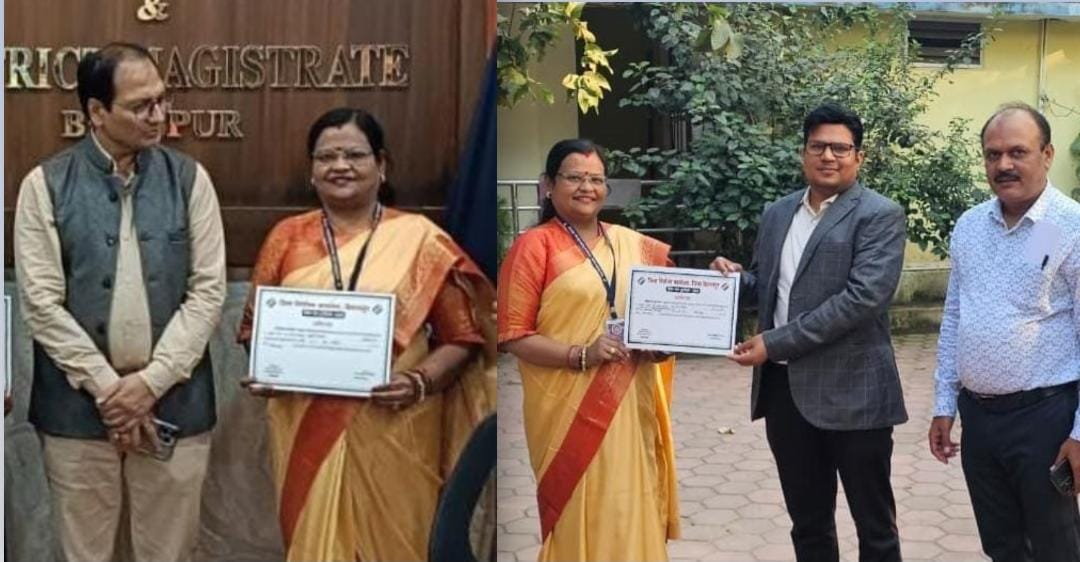 बिलासपुर। 27 नवंबर को मतदाता सूचियां के गहन पुनरीक्षण कार्य में कार्यरत बूथ लेवल ऑफिसर सुनीता सिंह को 100% कार्य पूरा करने के अवसर पर कलेक्टर व जिला निर्वाचन अधिकारी संजय अग्रवाल ने आज प्रशस्ति पत्र देकर सम्मानित किया है। खास करके यह विशेष अवसर था कि शहर क्षेत्र से सबसे पहले मतदाता सूचियां के गहन पुनरीक्षण कार्य को 100% पूरा करने में सुनीता सिंह का नाम था।उन्होंने शहर जोन क्रमांक 5 से सबसे पहले मतदाता पुनरीक्षण का काम 100% पूर्ण किया। इस अवसर पर शहर जोन क्रमांक 5 के निगम कमिश्नर व अभिहित अधिकारियों ने उन्हें इस उपलब्धि के लिए अपनी शुभकामनाएं दी ।ज्ञात हो यह काम प्रभावी, पारदर्शी एवं समयबद्ध रूप से संचालित किया जा रहा है। निर्वाचन आयोग द्वारा निर्धारित मानकों के अनुरूप जिले के बीएलओ एवं अभिहित अधिकारियों द्वारा मतदाता सूची के शुद्धिकरण एवं डिजिटाइजेशन कार्य को उत्कृष्टता के साथ पूरा किया जा रहा है। अभियान के दौरान शत-प्रतिशत लक्ष्य प्राप्त करने वाली बीएलओ सुनीता सिंह ने बताया कि,जिला निर्वाचन अधिकारी के बेहतर मार्गदर्शन और आपसी समन्वय और बेहतर टीमवर्क के साथ जिम्मेदारी, सतर्कता और समर्पण की भावना के साथ कार्य करने से मतदाता सूची के डिजिटाइजेशन का कार्य समय पर पूरा हुआ है। मतदाता सूचियों के गहन पुनरीक्षण कार्य में मैदानी स्तर पर कार्यरत बीएलओ का सतत कलेक्टर संजय अग्रवाल हौसला बढ़ा रहे है।