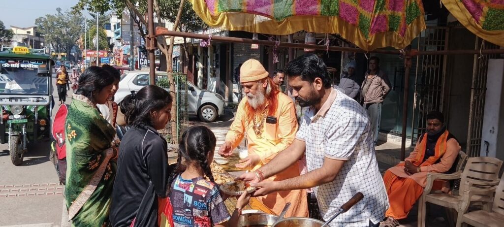 रायपुर :- श्री दुर्गा माता मंदिर मढ़ी लिली चौक पुरानी बस्ती रायपुर के सेवादारी स्वर्गीय श्री हेमराज पृथ्वानी की प्रथम पुण्यतिथि पर 9 दिसंबर 2025 दिन मंगलवार को सुबह 11:00 बजे से दोपहर 2:00 बजे तक श्री सतगुरु जीवतपुरी गोस्वामी जी श्री दुर्गा मंदिर मढ़ी पुरानी बस्ती लिली चौक रायपुर में भंडारा प्रसाद का वितरण किया गया कार्यक्रम की शुरुआत सतगुरु जीवतपुरी गोस्वामी जी और दुर्गा माता, हिंगलाज माता जी के फोटो पर पुष्प अर्पण कर हेमराज जी को श्रद्धा सुमन अर्पित करते हुए सतगुरु महंत श्री अनंतपुरी गोस्वामी जी के पावन सानिध्य में आम भंडारा का आयोजन किया गया बड़ी संख्या में लोगों ने भंडारा ग्रहण किया भंडारे में पुलाव,शोले की सब्जी पूड़ी हलवा अचार एवं पानी पाउच का वितरण किया गया