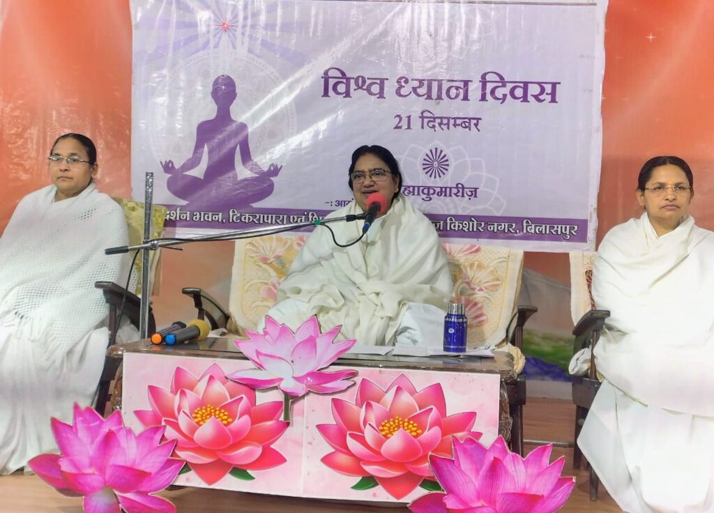 संयुक्त राष्ट्र द्वारा घोषित 21 दिसंबर ‘अंतरराष्ट्रीय ध्यान दिवस’ के अवसर पर ब्रह्माकुमारीज़ संस्थान द्वारा बिलासपुर सहित विभिन्न केन्द्रों पर विशेष ध्यान एवं जागरूकता कार्यक्रमों का आयोजन किया गया। विश्व ध्यान दिवस की मुख्य थीम ‘एकता और विश्वास’* रही, जिसके अंतर्गत विश्व स्तर पर शांति, सद्भाव और मानवीय मूल्यों की स्थापना का संदेश दिया गया।