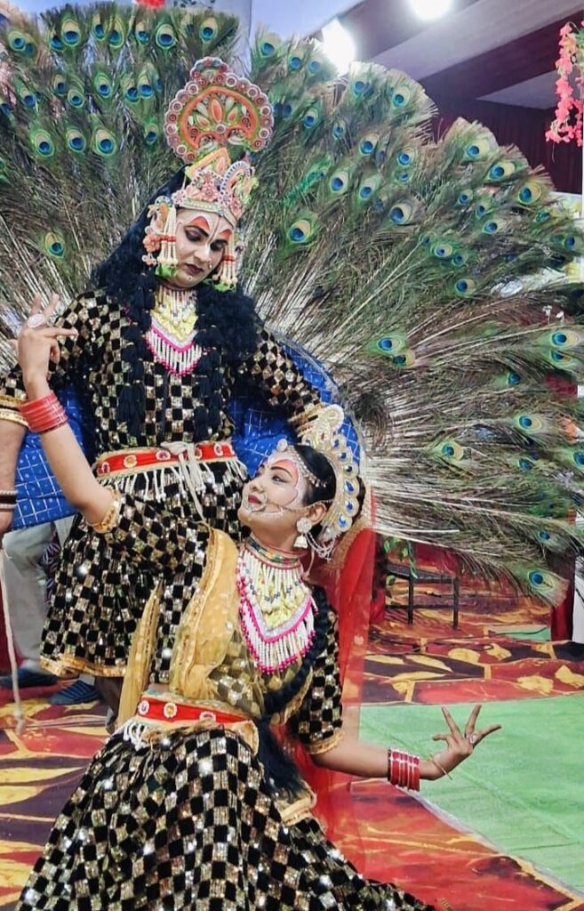 वहीं वृंदावन से आये कलाकार दंपति विनय भारद्वाज और राधा भारद्वाज ने मोर बन कृष्ण संग राधा की मयूर नृत्य की आकर्षक प्रस्तुति ने दर्शकों को भाव विभोर कर दिया।