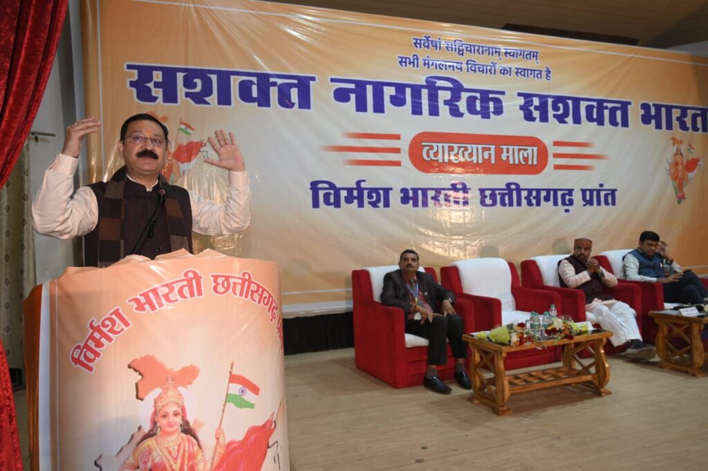 बिलासपुर। न्यायधानी बिलासपुर में शनिवार को विमर्श भारती छत्तीसगढ़ प्रांत के तत्वावधान में ‘सशक्त नागरिक, सशक्त भारत’ विषय पर व्याख्यानमाला का आयोजन किया गया। मुख्य अतिथि एवं पूर्व महानिदेशक भारतीय जन संचार संस्थान (आईआईएमएसी) नई दिल्ली, प्रोफेसर संजय द्विवेदी ने कहा कि सशक्त नागरिक देश को जोड़ता है, तोड़ता नहीं। उन्होंने कहा कि आज देश में टुकड़े टुकड़ गैंग सक्रिय है, जिनका दिन- रात एक ही काम है कि लोग एक दूसरे से लड़ें, समाज में विघटन हो और देश तोड़ना ही उनका एकमात्र काम है।