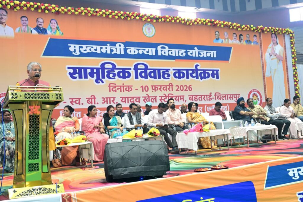 बिलासपुर, 10 फरवरी 2026/महिला एवं बाल विकास विभाग द्वारा मुख्यमंत्री कन्या विवाह योजना के तहत सामूहिक विवाह कार्यक्रम का आयोजन प्रदेश भर में किया गया। जिसमें 6 हजार 412 जोड़ों ने दांपत्य जीवन में प्रवेश किया। मुख्यमंत्री श्री विष्णुदेव साय रायपुर में आयोजित कार्यक्रम में शामिल हुए। उन्होंने वर्चुअली जुड़कर सभी नव विवाहित जोड़ों को आर्शीवाद दिया। इस अवसर पर कुपोषण मुक्त छत्तीसगढ़ अभियान का भी शुभारंभ मुख्यमंत्री द्वारा किया गया। जिला स्तरीय सामूहिक विवाह कार्यक्रम का आयोजन स्व. श्री बी.आर. यादव बहतराई स्टेडियम में किया गया। कार्यक्रम में जिले के 175 पात्र जोड़ों का पारंपरिक रीति-रिवाजों के साथ विवाह कराया गया। कार्यक्रम में उपस्थित विधायक सर्वश्री श्री धरमलाल कौशिक, श्री दिलीप लहरिया, श्री अटल श्रीवास्तव सहित अन्य जन प्रतिनिधियों ने दंपत्तियों को शुभकामनाएं दीं और उनके सुखद जीवन की कामना की।
