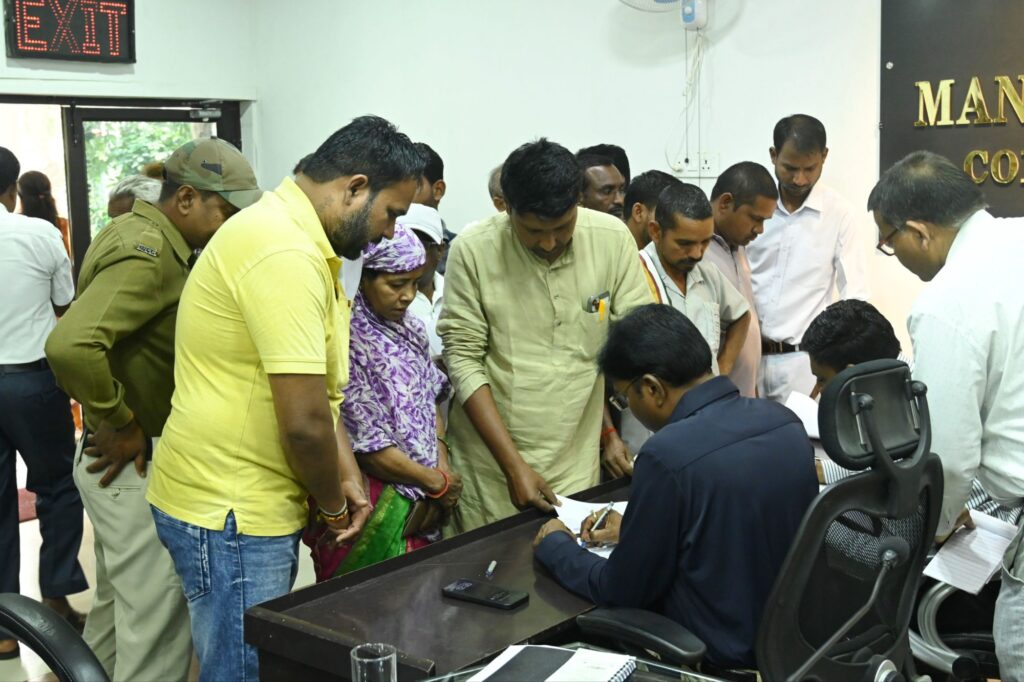 बिलासपुर, 10 फरवरी 2026/कलेक्टर श्री संजय अग्रवाल के निर्देश पर नगर निगम कमिश्नर श्री प्रकाश कुमार सर्वे ने साप्ताहिक जनदर्शन में आज दूर-दराज से पहुंचे ग्रामीणों की फरियाद सुनी। उन्होंने एक-एक कर प्रत्येक व्यक्ति से मुलाकात कर उनका आवेदन लिया और आवश्यक कार्रवाई के लिए अधिकारियों को निर्देशित किया। लोगों ने जनदर्शन में व्यक्तिगत एवं सामुदायिक हित से जुड़े विषयों को लेकर जिला प्रशासन का ध्यान आकृष्ट करते हुए आवेदन दिया। सहायक कलेक्टर श्री अरविंथ कुमारन एवं अपर कलेक्टर श्री एसएस दुबे ने भी लोगों की समस्याओं को सुना। लगभग 50-60 लोगों ने कलेक्टर से मिलकर व्यक्तिगत एवं सामुदायिक समस्याओं से संबंधित आवेदन दिए।