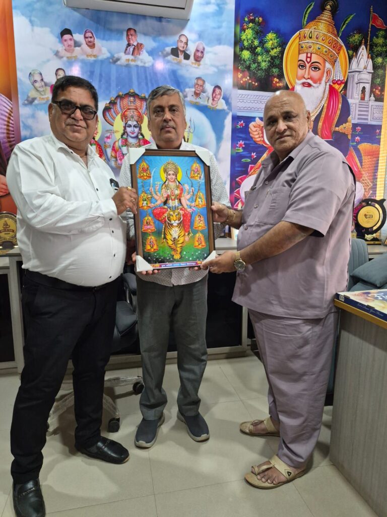 कैलाश मार्केटिंग में आए अतिथियों बलराम आहूजा एवं सुरेश पंजवानी का कैलाश मालघानी द्वारा दुर्गा माता जी का छाया चित्र देकर उनका स्वागत और सम्मान किया , बलराम भैया एवं अन्य लोगों ने कैलाश भैया का धन्यवाद किया और उन्हें सिंधियत जो मेलो कार्यक्रम में शामिल होने के लिए निमंत्रण दिया कि वह सह परिवार शामिल होवे।