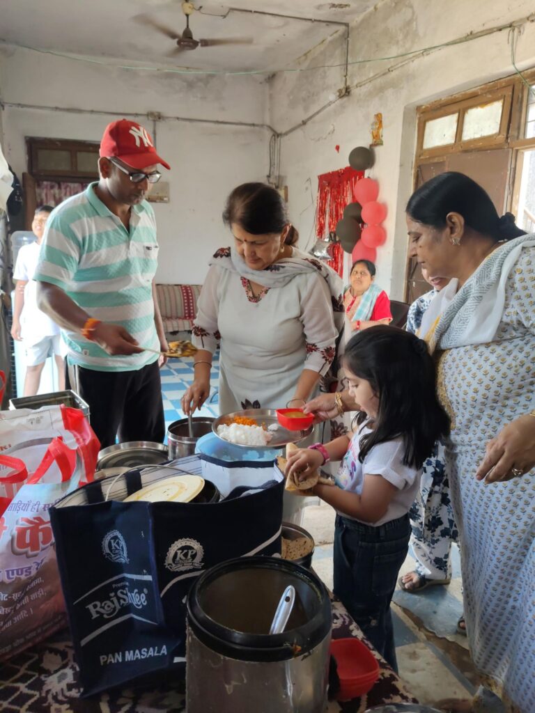 दो वृद्धाश्रम में (80 सदस्य) और एक घरोंदा आश्रम में (25 👭बहनों ) में प्रेमपूर्वक दाल-चावल, आलू-बैंगन सब्जी, चपाती, दही बड़ा fryams और बूंदी वितरित की। साथ ही “दिल का द्वार खोल” पुस्तक भी भेंट की।