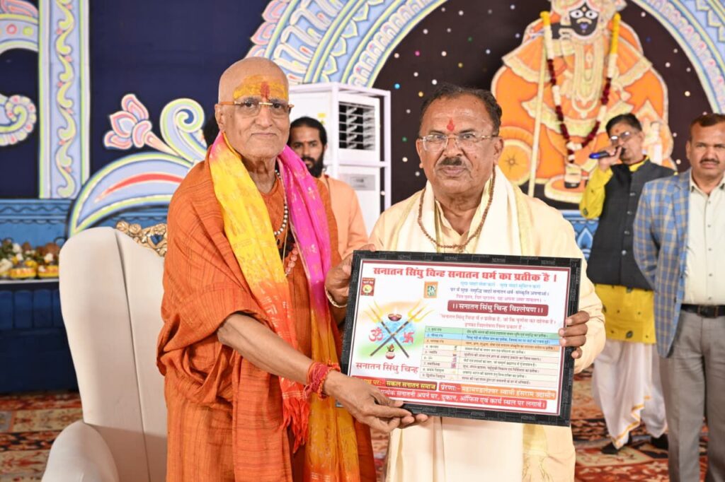 महामंडलेश्वर स्वामी हंसराम उदासीन महाराज एवं वहां के संत महात्माओं के साथ सनातन सेवा समिति एवं हंसगंगा हरि शेवा भक्त मण्डल के पदाधिकारियों एवं सदस्यों ने स्वागत किया। श्रीमद् भागवत कथा में कृष्ण जन्मोत्सव का उल्लास छाया तो मंच से महामंडलेश्वर के साथ विधानसभा अध्यक्ष देवनानी भी बधाईयां बांटते हुए खुशियों में सहभागी बने। देवनानी ने सनातन मंगल महोत्सव को एतिहासिक आयोजन बताते हुए कहा कि हम भाग्यशाली है जो भीलवाड़ा में पहली बार ऐसे आयोजन के साक्षी बन रहे है। ऐसे आयोजन से जिस आध्यात्मिक आनंद की अनुभूति होती है उससे सारे कष्ट ओर तनाव दूर हो जाते है। सनातन को शाश्वत ओर प्राचीनतम धर्म बताते हुए उन्होंने कहा कि ये जीवन जीना सिखाता है। सनातन की यहीं सीख है कि हम अपने जीवन में आचरण में शुद्धता लाए ओर यहीं भाव रखे कि किसी को पीड़ा नहीं पहुंचे ओर सबका भला हो। हरि शेवा उदासीन आश्रम महामंडलेश्वर हंसराम उदासीन के सानिध्य में पूरे देश में गौरक्षा, कन्या पूजन आदि माध्यम से सेवा ओर संस्कार का कार्य कर रहा है। देवनानी ने कहा कि आज सारे देश में सनातन की चर्चा हो रही है ओर नया भारत बन रहा है। पूरी दुनिया में भारत की साख बढ़ रही है। भारत को दुनिया की महाशक्ति नहीं महामार्गदर्शक बनाना है।