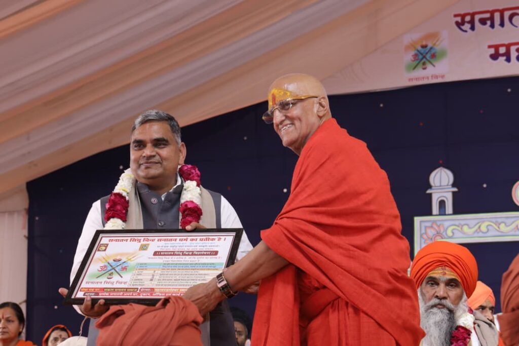 महामंडलेश्वर स्वामी हंसराम नव दीक्षित संतों को मंच पर लेकर आए